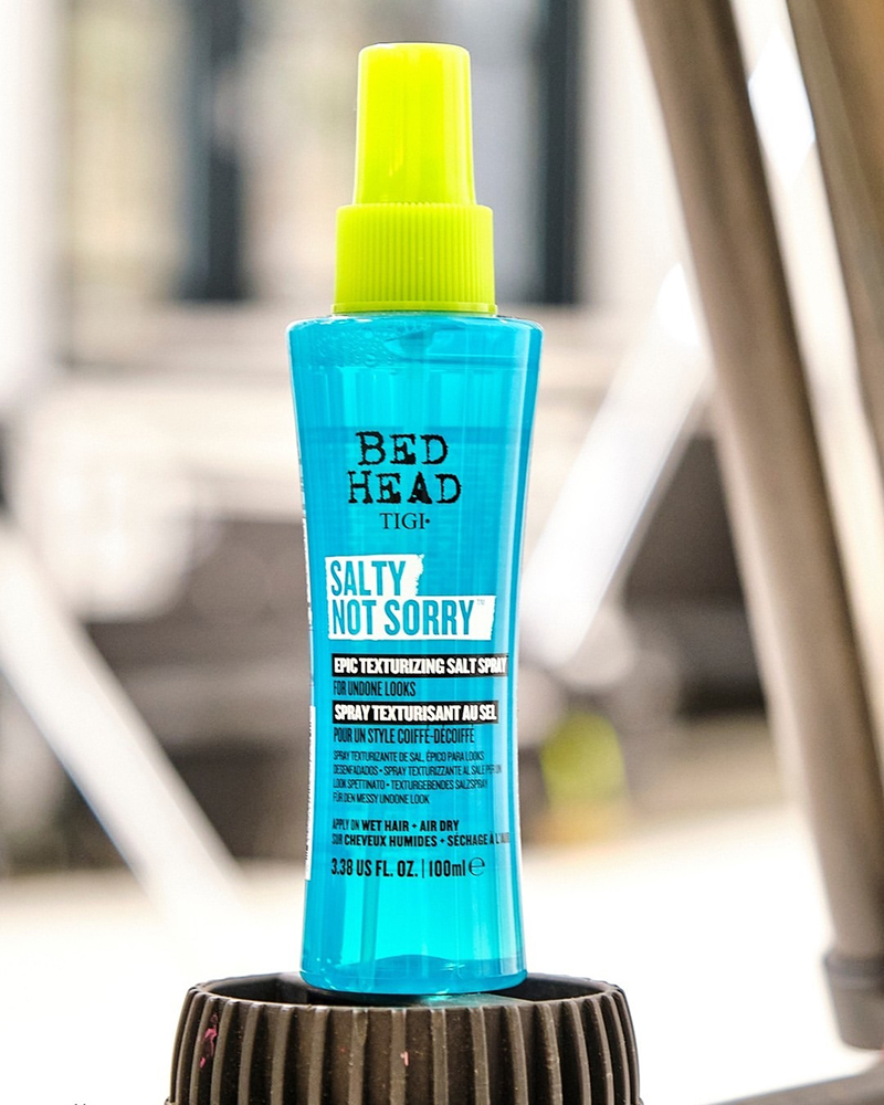 Sản phẩm mới của BED HEAD, Salty Not Sorry™ là một loại xịt muối biển tạo kiểu mạnh mẽ mà vẫn tự nhiên. Nếu bạn đã từng yêu thích Xịt muối Bed Head Queen Beach™, bạn sẽ “mê mệt” Salty Not Sorry™. Công thức tuyệt vời từ muối Biển Chết tạo nên độ bám và cấu trúc cho hiệu ứng bồng bềnh, đồng thời được pha trộn với Polymer tạo độ rít nhanh và đồng thời bảo vệ tóc khỏi độ ẩm và vểnh xù. Salty Not Sorry mang đến cho mái tóc vẻ ngoài tự nhiên, vẫn giữ nếp linh hoạt và tạo nên kiểu tóc mullet độc đáo.