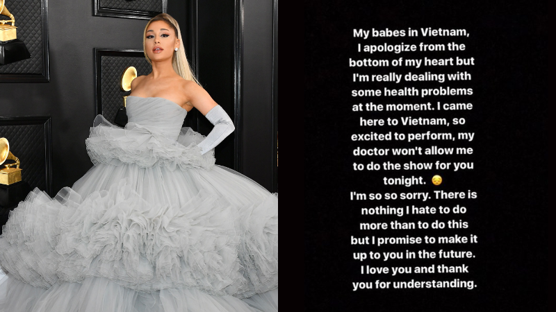 Năm 2017 hẳn là một năm khó quên với các tín đồ của dòng nhạc US-UK tại Việt Nam khi chứng kiến đêm diễn trong khuôn khổ Dangerous Woman Tour của nữ ca sĩ Ariana Grande tại thành phố Hồ Chí Minh đột ngột bị huỷ bỏ. Giọng ca “7 Rings” cho biết cô buộc phải huỷ show vì lý do sức khoẻ và gửi lời xin lỗi đến khán giả Việt bằng hình thức Story hiển thị chỉ 24 giờ trên tài khoản Instagram cá nhân. Sự việc sẽ không trở nên khó hiểu nếu nữ ca sĩ không tức tốc di chuyển đến Trung Quốc và biểu diễn cực kỳ sung sức trước khán giả của đất nước tỷ dân chỉ sau đó 2 ngày.