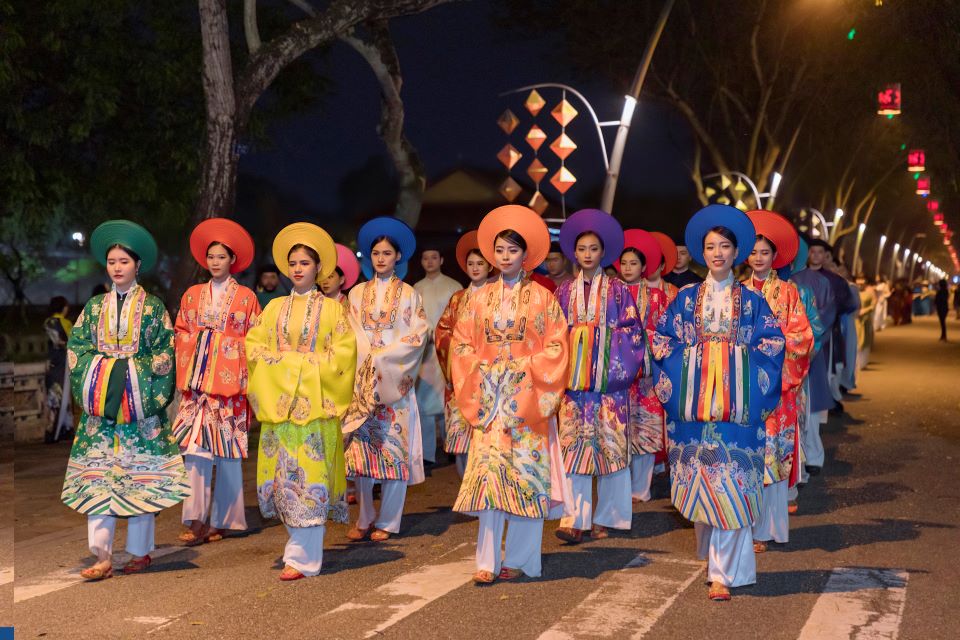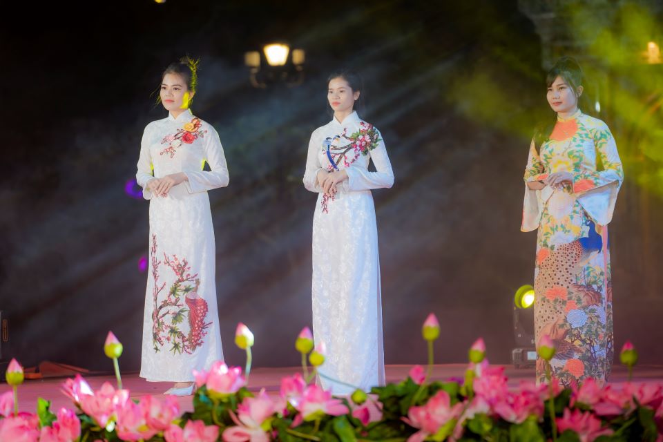 Đến tối, tại sân khấu cửa Chương Đức đã diễn ra chương trình quảng diễn áo dài cộng đồng và chương trình nghệ thuật áo dài Hương Sắc Huế. Ảnh: Hoàng Lê