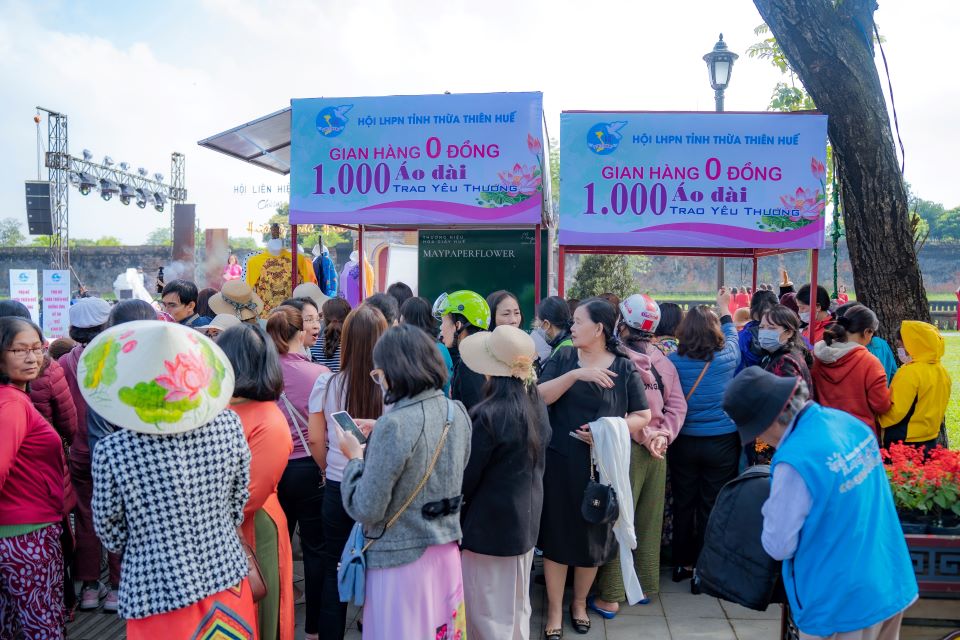 Tại ngày hội, người dân và du khách được chiêm ngưỡng 1.000 chiếc áo dài được trao tặng cho hội viên, phụ nữ, các em học sinh có hoàn cảnh khó khăn trên địa bàn tỉnh. Ảnh: Hoàng Lê