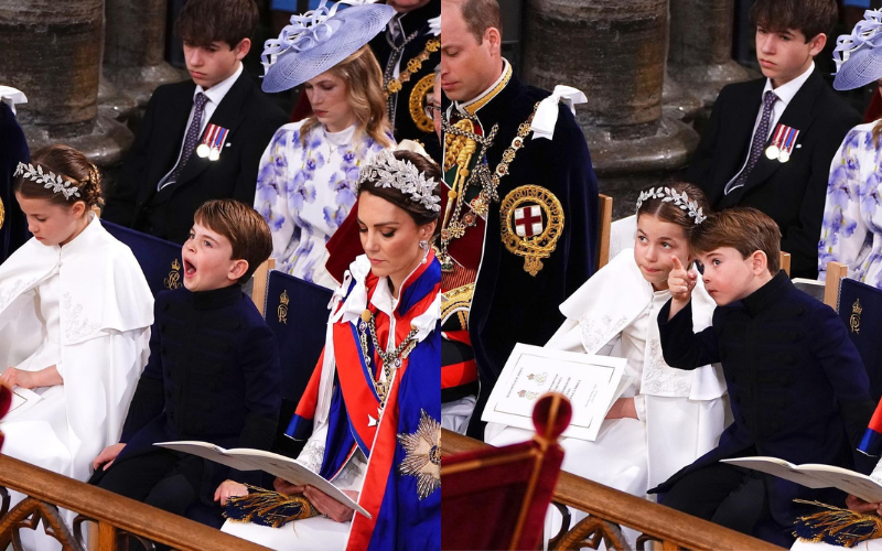 Khoảnh khắc Hoàng tử út Louis hồn nhiên “ngáp ngắn ngáp dài” gây sốt mạng xã hội vì quá đáng yêu. Bên cạnh đó, công chúa Charlotte cũng khiến cư dân mạng thích thú khi diện vương miện bạc đính hoa pha lê từ Alexander McQueen và Jess Collet, tựa như bản sao thu nhỏ của mẹ.