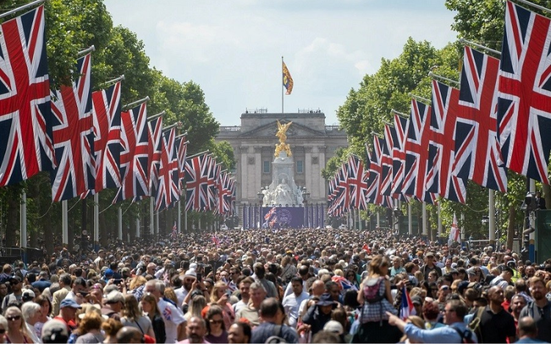 Hàng chục nghìn người tập trung tại the Mall và dọc theo tuyến đường diễu hành từ Cung điện Buckingham đến Tu viện. Nhiều người cắm trại qua đêm để có tầm nhìn tốt về cuộc diễu hành có sự tham gia của 7.000 binh sĩ và 19 ban nhạc quân đội.