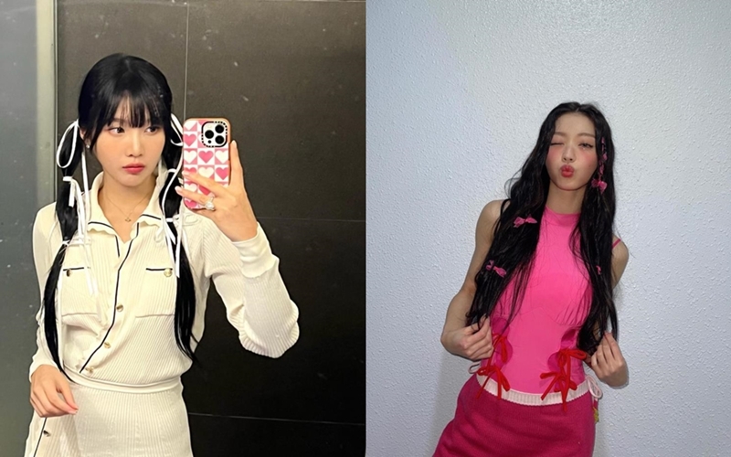 Những chiếc ruy băng sắc màu xuất hiện với tần suất dày đặc trên Instagram của các nữ idol Hàn trong những ngày gần đây. Các cô nàng có muôn vàn kiểu biến tấu kiểu tóc khác nhau với dây ruy băng mà chúng ta hoàn toàn có thể học tập và áp dụng ngay trong ngày Giáng sinh.
