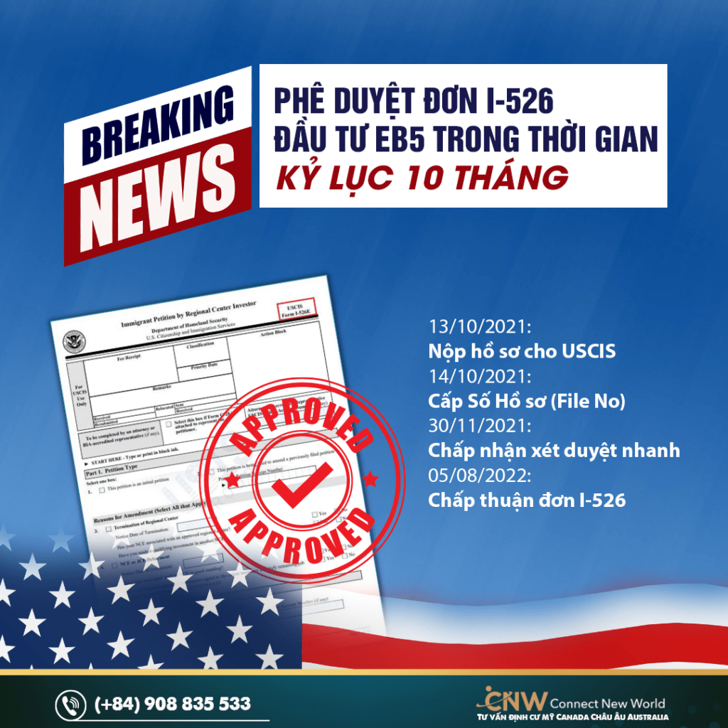 - Ngày 5/8/2022: Nhà đầu tư nhận được phê duyệt hồ sơ từ Sở Di trú và chấp thuận đơn I-526