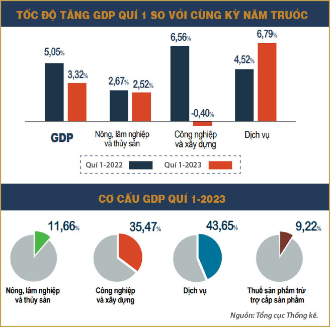 Tốc độ tăng trưởng kinh tế quí 1-2023 phản ánh nền kinh tế còn đang rất khó khăn trên con đường hồi phục hoàn toàn sau đại dịch. Sự suy giảm kinh tế thế giới nói chung cộng với triển vọng ảm đạm từ các đối tác thương mại lớn như Mỹ và EU, cùng với nguy cơ lạm phát cao toàn cầu còn dai dẳng… sẽ tác động tới kinh tế quí 2 và cả năm 2023.