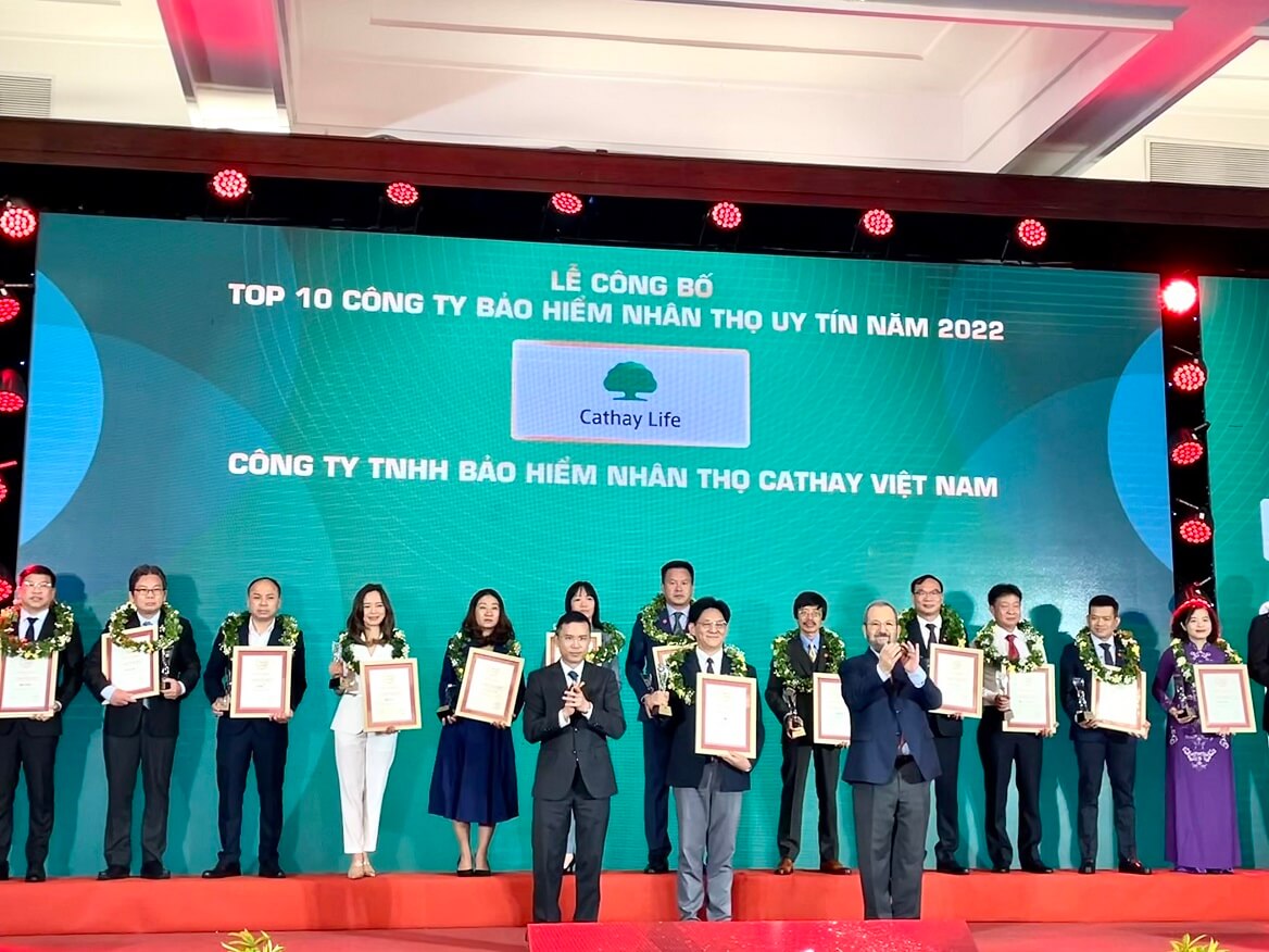Ngày 3-8-2022, tại Dinh Độc Lập, TPHCM, Cathay Life Việt Nam vinh dự nhận giải thưởng Top 10 công ty Bảo hiểm nhân thọ uy tín năm 2022.