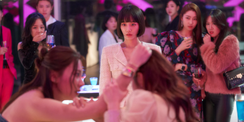 Điểm cộng thứ ba “Celebrity” nằm ở sự hào nhoáng, lộng lẫy từ bối cảnh phim, màu phim cho đến thời trang, hay những bữa tiệc xa hoa của các ngôi sao cõi mạng,… Thật hiếm có ai không xiêu lòng trước màn “debut” giới influencer đầy ấn tượng của Seo Ah Ri trong chiếc đầm tweed sang chảnh của nhà mốt Saint Laurent, hay show thời trang Balmain với sự xuất hiện của nhiều item thời thượng, và cả pha hóng gió “đi vào lòng người” được khán giả ví von là “flexing vô tình” của thiếu gia nhà tài phiệt Han Jun Kyung (Kang Min Hyuk) khi đang tháp tùng Seo Ah Ri trên chiếc xế hộp Aston Martin bóng bẩy.
