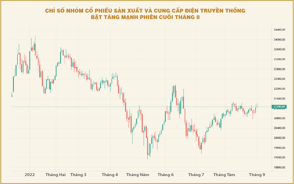 Chỉ số nhóm cổ phiếu sản xuất và cung cấp điện truyền thống chỉ mới tăng 10% trong vòng hai tháng qua, tương đồng với đà phục hồi của chỉ số VN-Index. Đáng lưu ý là khối lượng giao dịch của nhóm cổ phiếu điện cũng có sự cải thiện từ những phiên cuối tháng 8 đến nay, cho thấy dòng tiền dường như đang chú ý đến nhóm này với kỳ vọng kết quả kinh doanh sẽ tích cực hơn trong nửa cuối năm nay.