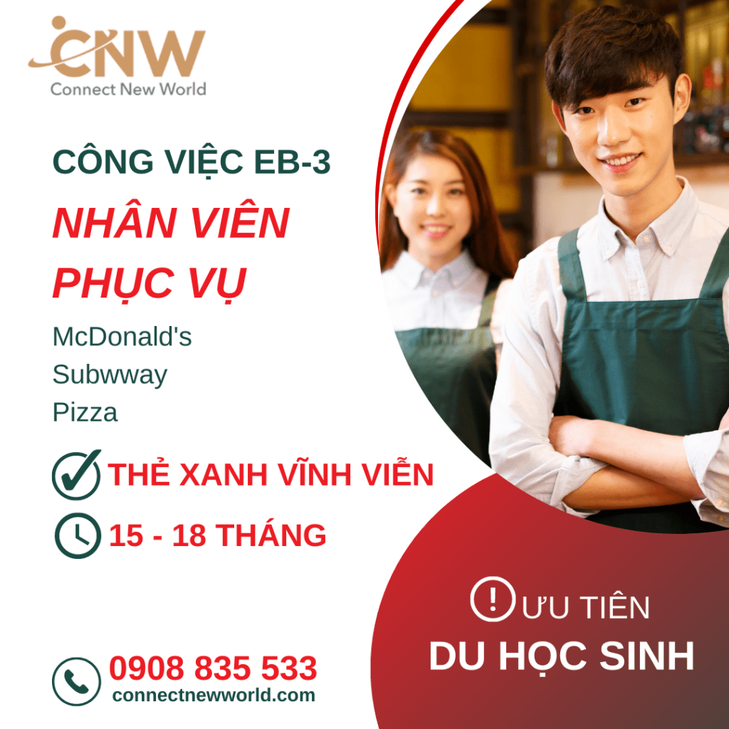 Các ứng viên quan tâm vui lòng liên hệ & gửi lý lịch cho chúng tôi (vị trí việc làm số 4 và 5) trong thời gian sớm nhất. Nhà tuyển dụng sẽ xem xét sơ yếu lý lịch và lên lịch phỏng vấn qua Zoom (tùy theo yêu cầu vị trí và công việc). Sau đó, nhà tuyển dụng sẽ gửi thư mời làm việc cho ứng viên và CNW sẽ hỗ trợ quá trình chuẩn bị hồ sơ theo quy trình xin giấy phép lao động và thẻ xanh cho ứng viên theo quy định của chính phủ Hoa Kỳ.