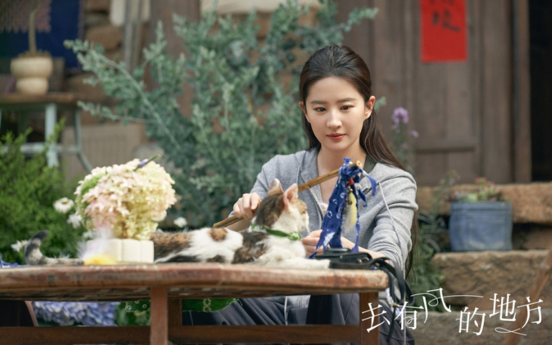 Ấn tượng đầu tiên mà “Đi Đến Nơi Có Gió” mang đến cho khán giả chính là khung cảnh thiên nhiên quá đỗi êm đềm. Phong cảnh hữu tình dù chỉ được thể hiện qua màn ảnh nhưng đã khiến nhiều người cảm giác như được hòa mình vào bầu không khí chung. Nữ chính Hứa Hồng Đậu (Lưu Diệc Phi) sau khi trải qua cú sốc mất đi người bạn thân thiết, liên tục dằn vặt trong tiếc nuối, cùng với những bất ổn tích tụ từ cuộc sống vội vã thường ngày, đã quyết định tạm rời chốn phồn hoa đô thị để đến thôn Vân Miêu ở Vân Nam tìm chút bình yên và ổn định lại trạng thái. Một vùng thôn quê dân dã với cảnh sắc đẹp nao lòng, từng nẻo đường, nhà cửa, vườn tược, quán xá đều nên thơ và yên bình khiến người xem cũng phải ao ước được đặt chân đến một lần trong đời.