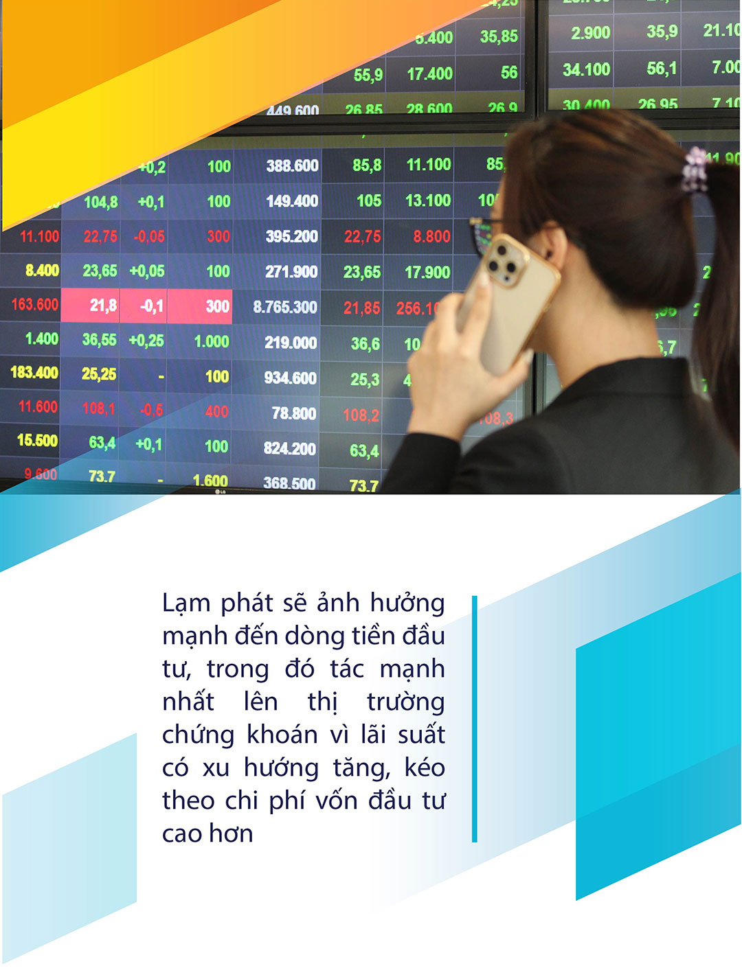 Tương tự, theo ông Nguyễn Thế Minh, Giám đốc phân tích Công ty chứng khoán Yuanta Việt Nam, lạm phát sẽ ảnh hưởng mạnh đến dòng tiền đầu tư, trong đó tác mạnh nhất lên thị trường chứng khoán vì lãi suất có xu hướng tăng, kéo theo chi phí vốn đầu tư cao hơn. “Khi lạm phát tăng thì các kênh mang lại thu nhập cố định như tiết kiệm, trái phiếu có xu hướng mang lại suất sinh lời tốt hơn”, ông Minh nói.