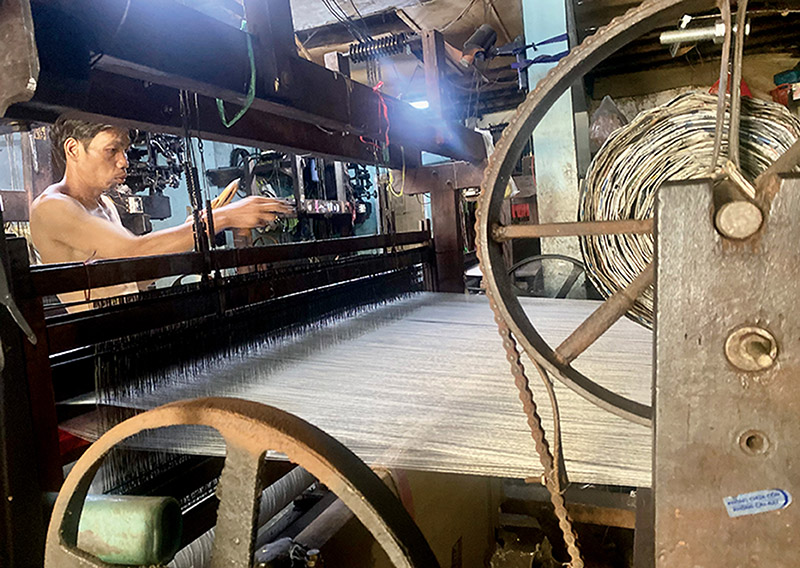 Tôi tìm gặp anh Ngọc Minh, chủ một hộ trên đường Năm Châu. Trong tiếng máy dệt ồn ã, anh kể lại: “Năm 1990, nhà tôi mua bốn máy dệt Trung Quốc, coi như cả cơ nghiệp trong đống sắt này…”.