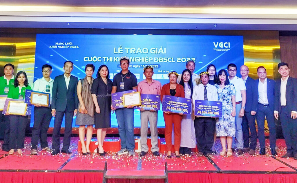 (KTSG Online) – Ngày 16-12, Liên đoàn Thương mại và Công nghiệp Việt Nam (VCCI) – Chi nhánh Cần Thơ phối hợp với thành viên Mạng lưới Khởi nghiệp ĐBSCL (Mekong Startup Network – MSN) và Quỹ Beacon Fund đã tổ chức vòng chung kết cuộc thi Khởi nghiệp ĐBSCL 2022 tại Cần Thơ cho 10 dự án xuất sắc. Các chủ dự án đạt giải không chỉ được thưởng tiền mặt mà còn được tập huấn kinh doanh.