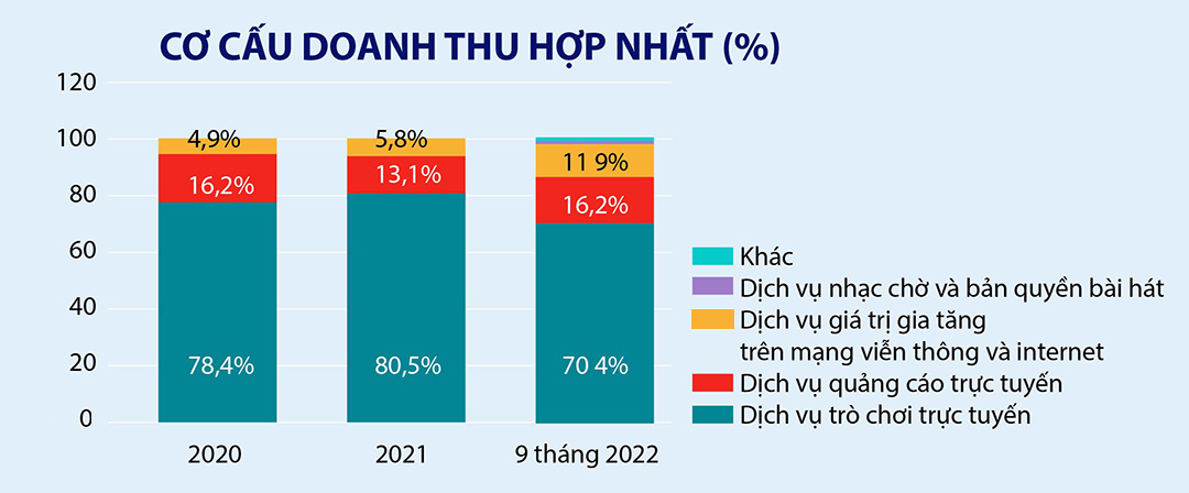 Tập đoàn VNG hoạt động trong lĩnh vực liên quan đến dịch vụ internet. Hiện VNZ có bốn mảng chính là phát hành phát triển trò chơi, truyền thông, thanh toán điện tử và dịch vụ đám mây.