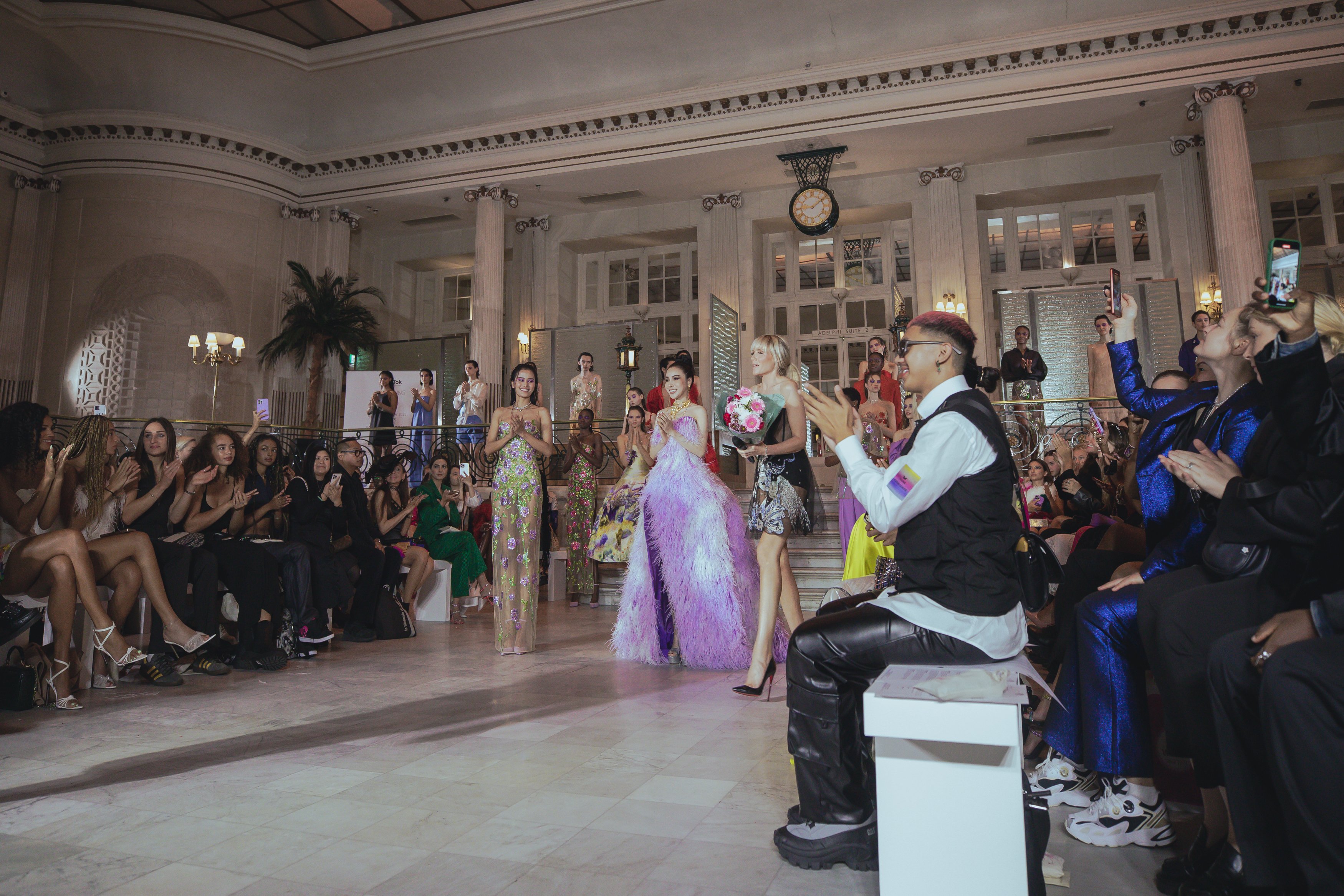 Vừa qua, nhà thiết kế Trần Hùng đã trình làng bộ sưu tập Xuân Hè 2023 trong khuôn khổ London Fashion Week Spring Summer 2023 tại khách sạn 114 tuổi, The Waldorf Hilton London. Góp mặp trong show diễn với vai trò vedette, hoa hậu Hoàng Dung tự tin sải những bước đi lộng lẫy bên cạnh dàn người mẫu quốc tế mà không sợ lép vế.