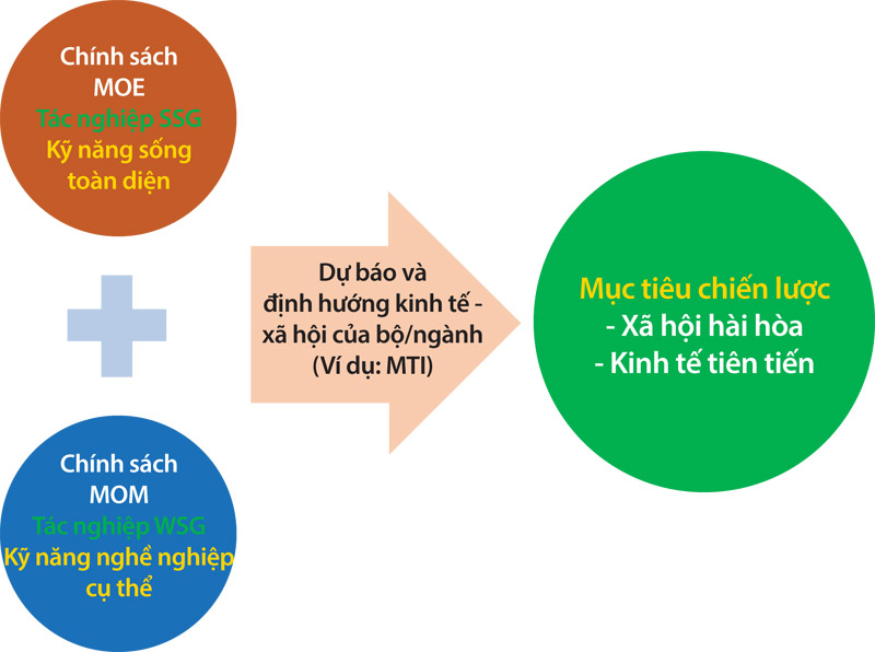Chia sẻ kinh nghiệm trong Hội nghị thượng đỉnh về phát triển bền vững do Diễn đàn Kinh tế Thế giới (WEF) tổ chức hồi tháng 9-2021, bà Gog Soon Joo, Giám đốc quản lý đào tạo Kỹ năng của SSG, cho biết Singapore vẫn luôn xem xét và đánh giá lại việc đào tạo lại lực lượng lao động kể từ ngày lập quốc. Để đảm bảo người lao động có các kỹ năng cần thiết cho công việc trong tương lai, Chính phủ Singapore đã ưu tiên các nguồn lực cho giáo dục và khơi dậy động lực học tập của người dân. Thông điệp cho người dân là tăng trưởng kinh tế sẽ ảnh hưởng đến thành đạt cá nhân nhưng mọi người phải thấm nhuần văn hóa học tập suốt đời.