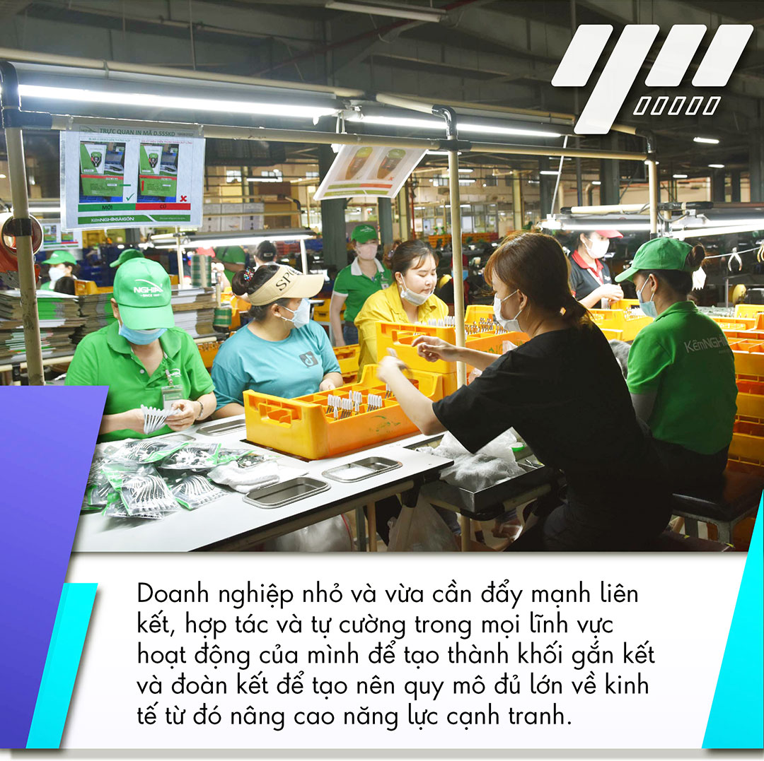 Thêm vào đó, các DNNVV cần đẩy mạnh liên kết, hợp tác và tự cường trong mọi lĩnh vực hoạt động của mình để tạo thành khối gắn kết và đoàn kết để tạo nên quy mô đủ lớn về kinh tế từ đó nâng cao năng lực cạnh tranh cho từng DNNVV.