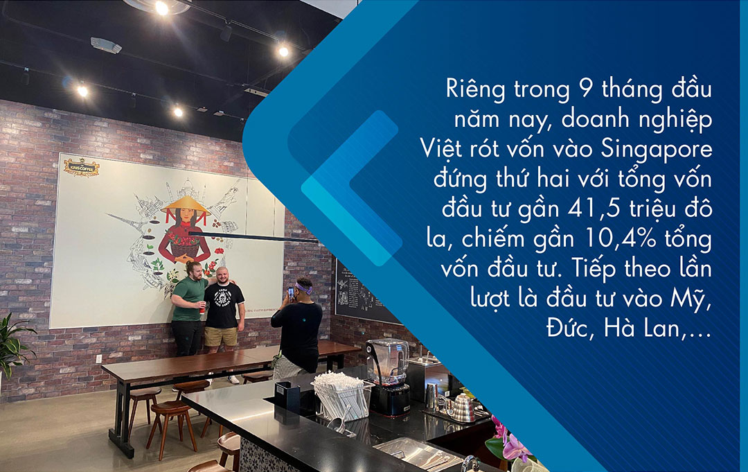 Cụ thể, riêng trong 9 tháng đầu năm nay, doanh nghiệp Việt rót vốn vào Singapore đứng thứ hai với tổng vốn đầu tư gần 41,5 triệu đô la, chiếm gần 10,4% tổng vốn đầu tư. Tiếp theo lần lượt là đầu tư vào Mỹ, Đức, Hà Lan,… Nhiều dự án đã chuyển từ quy mô nhỏ, đầu tư vào các ngành nghề đơn giản sử dụng nhiều đất đai, lao động, sang các dự án quy mô lớn, vào các ngành nghề đòi hỏi kỹ thuật, công nghệ cao, đồng thời lan rộng ra nhiều nước…