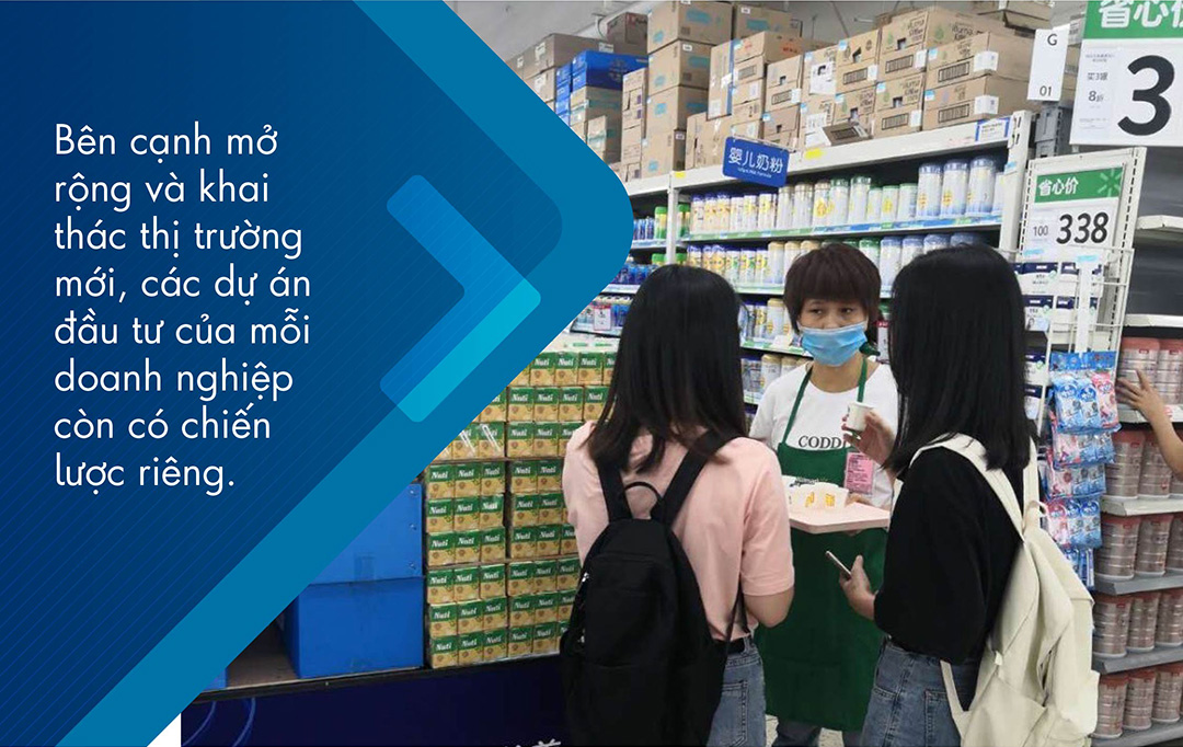 Bên cạnh mở rộng và khai thác thị trường mới, các dự án đầu tư của mỗi doanh nghiệp còn có chiến lược riêng. Đơn cử như NutiFood, đến nay công ty này vẫn là doanh nghiệp dinh dưỡng đầu tiên của Việt Nam xây dựng nhà máy tại Thụy Điển – đất nước của những quy chuẩn chất lượng khắt khe và những nông trại nuôi bò sữa đạt tiêu chuẩn organic. Tại đây có cả Viện nghiên cứu dinh dưỡng Nutifood Thụy Điển (NNRIS) – nơi quy tụ đội ngũ chuyên gia hàng đầu thế giới giúp Nutifood có thể đón đầu những thành tựu, công nghệ mới nhất, mang tinh hoa dinh dưỡng thế giới về cho người Việt.