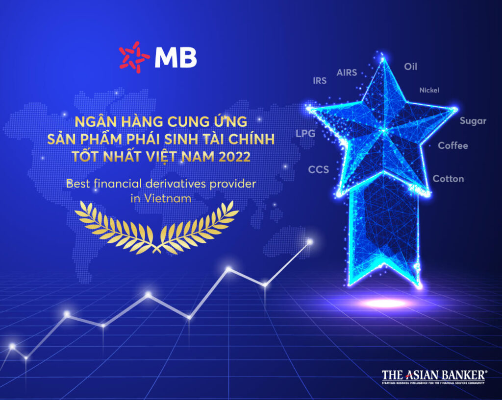 Giải thưởng “Best Financial Derivatives Provider in Vietnam – Ngân hàng cung ứng sản phẩm phái sinh tài chính tốt nhất Việt Nam” được trao vừa qua đã tiếp nối một loạt những ghi nhận của The Asian Banker – tạp chí nghiên cứu hàng đầu châu Á – Thái Bình Dương về ngành tài chính – ngân hàng đối với MB trên các mặt hoạt động của Ngân hàng, tiếp nối sau giải “Best FX Bank in Vietnam 2016”; “Best Derivatives Provider in Vietnam 2019” và cú đúp giải thưởng – “Best FX Bank in Vietnam” and “Best Financial Derivatives Provider in Vietnam” – từ The Asian Banker trong năm 2021.