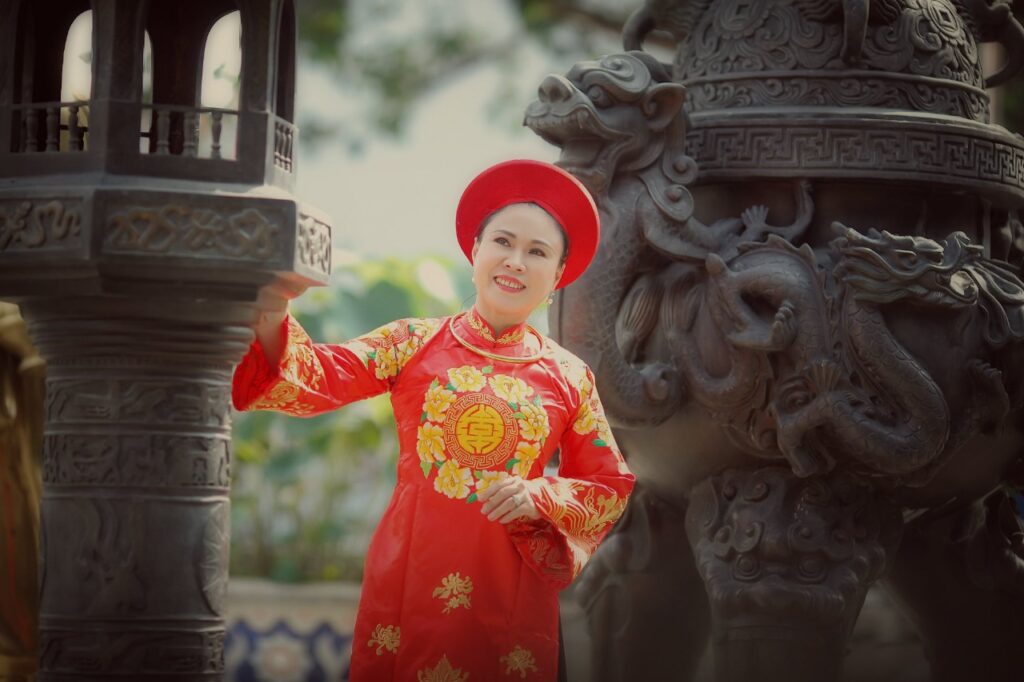 Nghệ nhân Lê Thị Quỳnh Trang, người thổi hồn tạo nên những nét hoa văn thêu rồng phượng trên áo dài mang đậm nét Cung đình