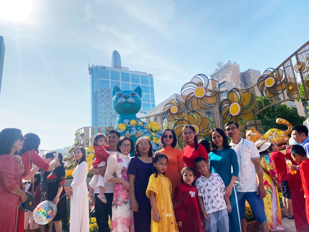 Chị Tuyền (ngụ Gò Vấp) cho rằng đường hoa Nguyễn Huệ năm nay đẹp, nhiều tiểu cảnh độc đáo và có đầu tư hơn. “ Với những con mèo độc đáo, tôi và gia đình sắm được một bộ ảnh để ‘ăn Tết’. Dù mới ngày đầu mở cửa nhưng tôi thấy đường hoa thu hút rất đông người đến tham quan”, chị Tuyền nói.
