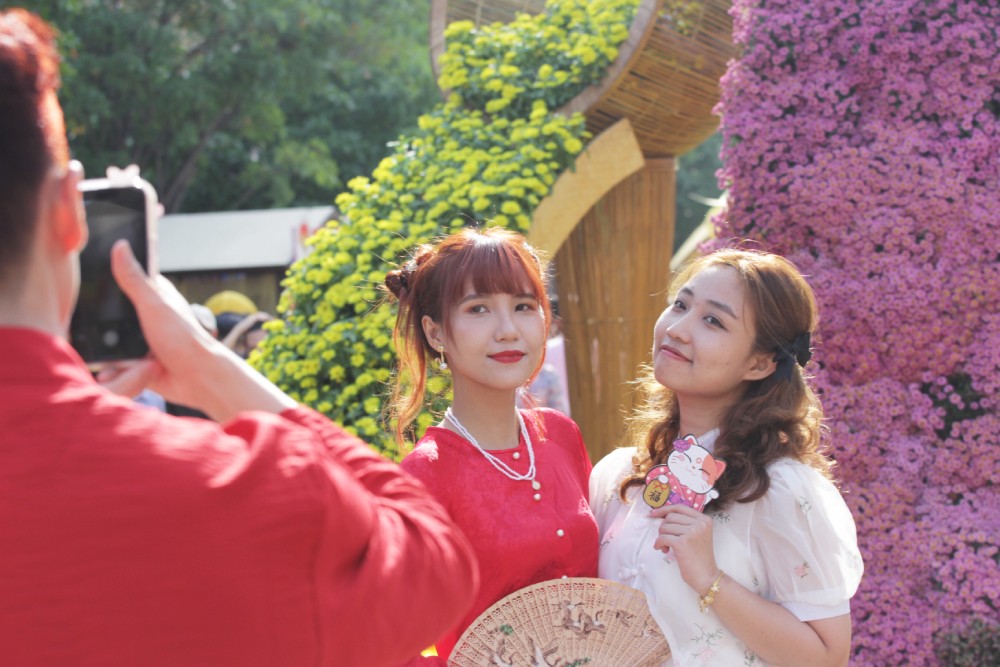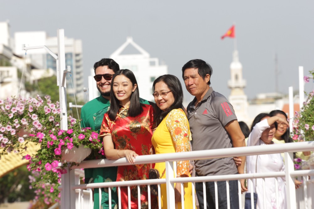 Theo ghi nhận của Sài Gòn Tiếp Thị, từ sáng sớm đường hoa Nguyễn Huệ đã thu hút hàng ngàn người dân thành phố, du khách nước ngoài du xuân, thưởng ngoạn và chụp ảnh lưu niệm.