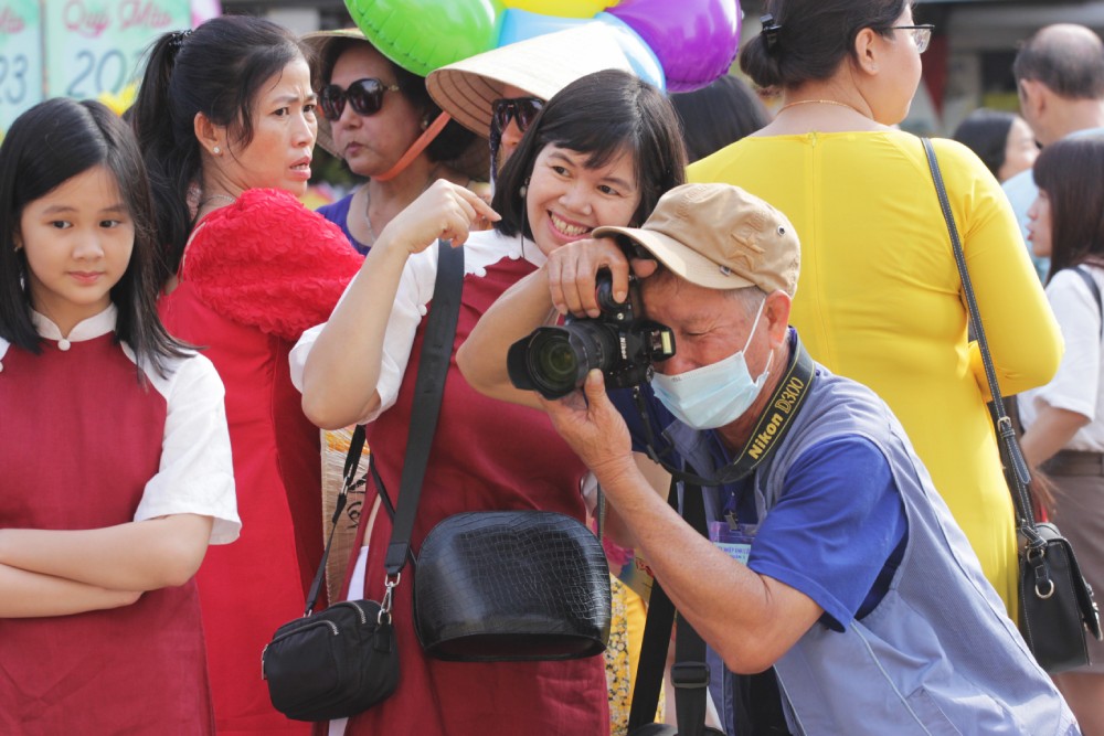 Nhiều gia đình đến sớm không chỉ để thưởng lãm đường hoa mà còn tranh thủ chụp ảnh du xuân năm mới.