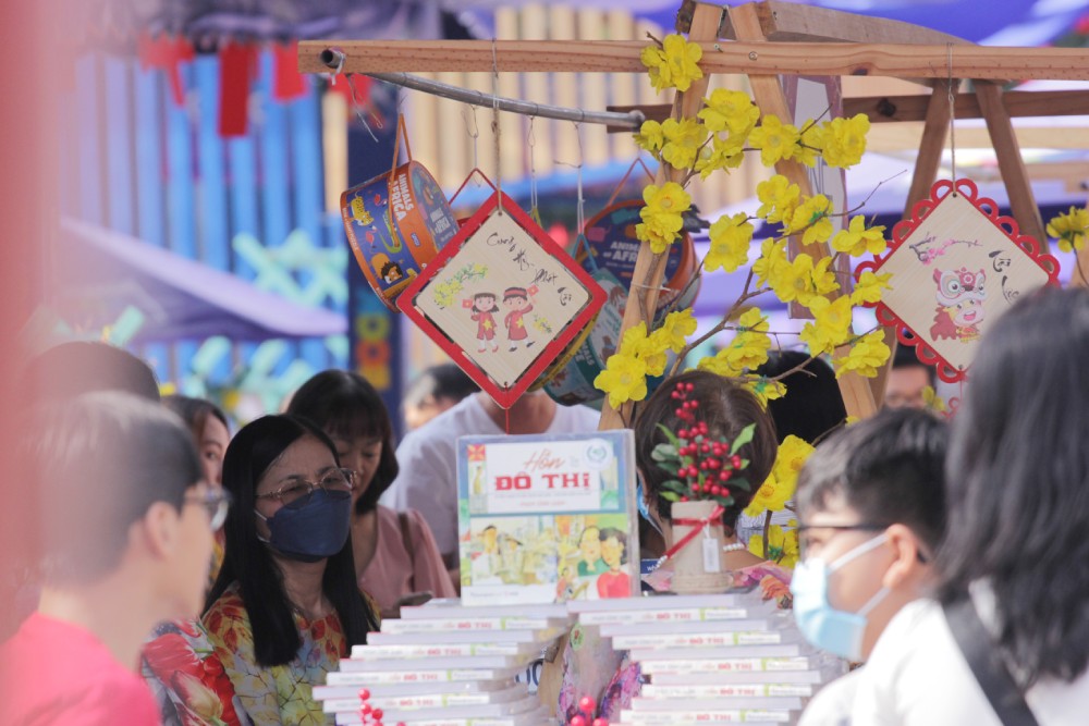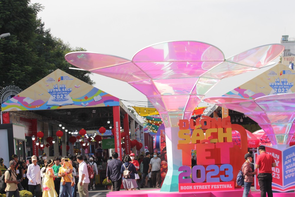 Kế bên đường hoa Nguyễn Huệ, lễ hội đường sách Tết Quý Mão 2023 được tổ chức trên đại lộ Lê Lợi cũng thu hút đông đảo người dân đến tham quan.