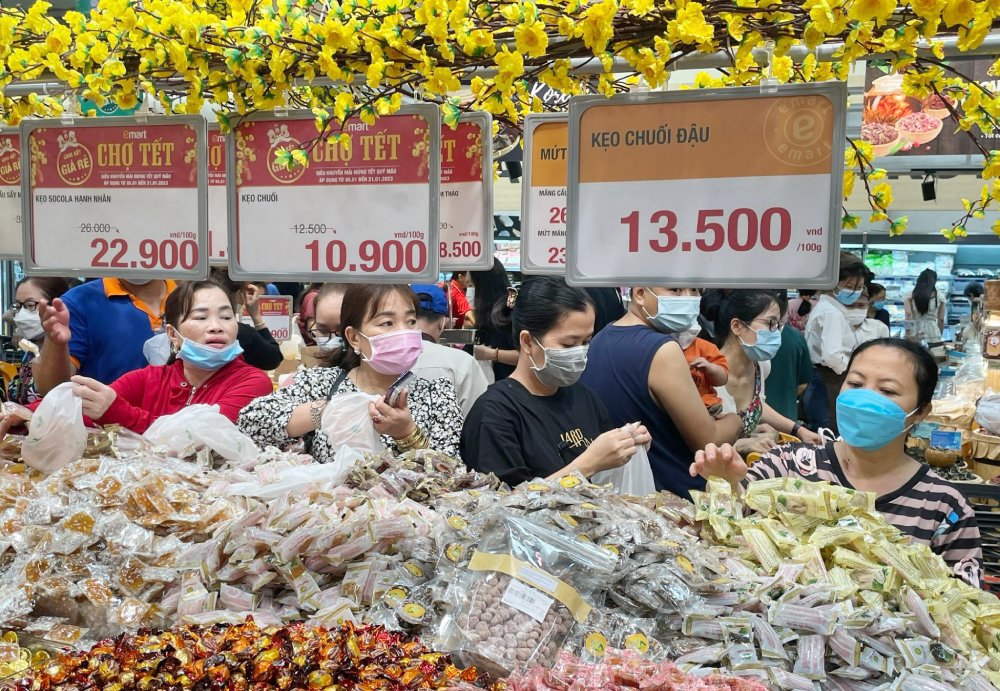 (KTSG Online) – Những ngày này, người dân ở TPHCM đến các siêu thị và chợ rất sớm, từ khi những điểm mua sắm này vừa mở cửa để mua đồ tiêu dùng cho dịp Tết. Những hình ảnh KTSG Online ghi nhận từ một số siêu thị, chợ cho thấy không khí tấp nập đó.