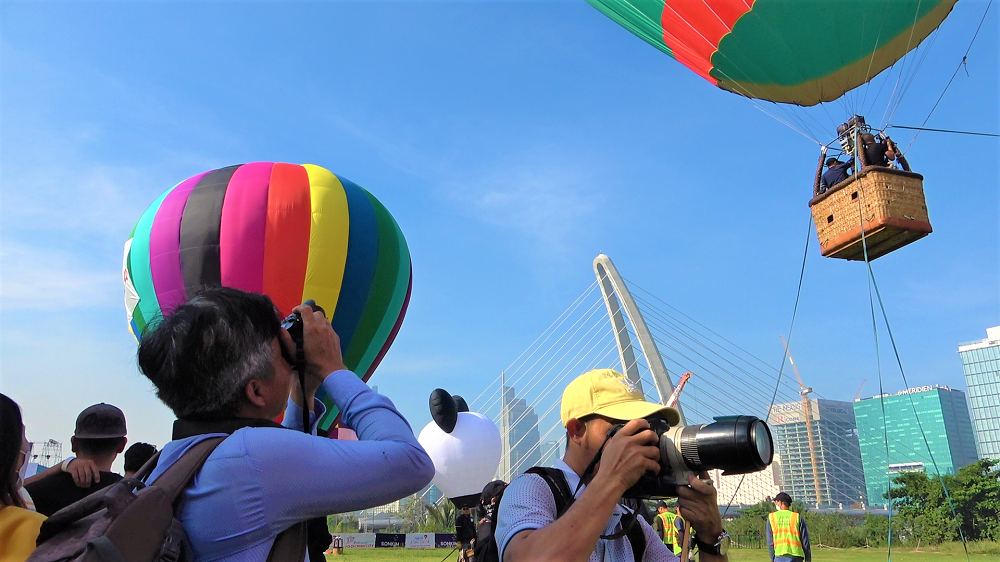 (SGTT) – Sáng 8-12, sự kiện Ngày hội Khinh khí cầu TPHCM lần 2 đã chính thức khai mạc tại Công viên chân cầu Thủ Thiêm 2 (TP Thủ Đức). Sự kiện đã thu hút nhiều người dân đến tham quan, chụp ảnh, trải nghiệm ngồi khinh cầu ngắm toàn thành phố.