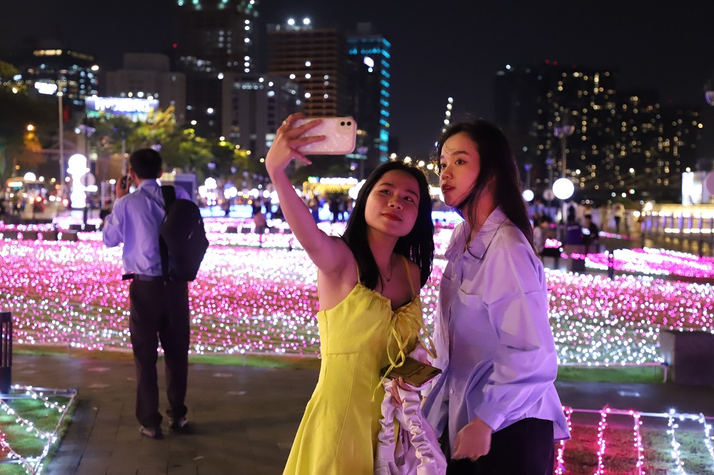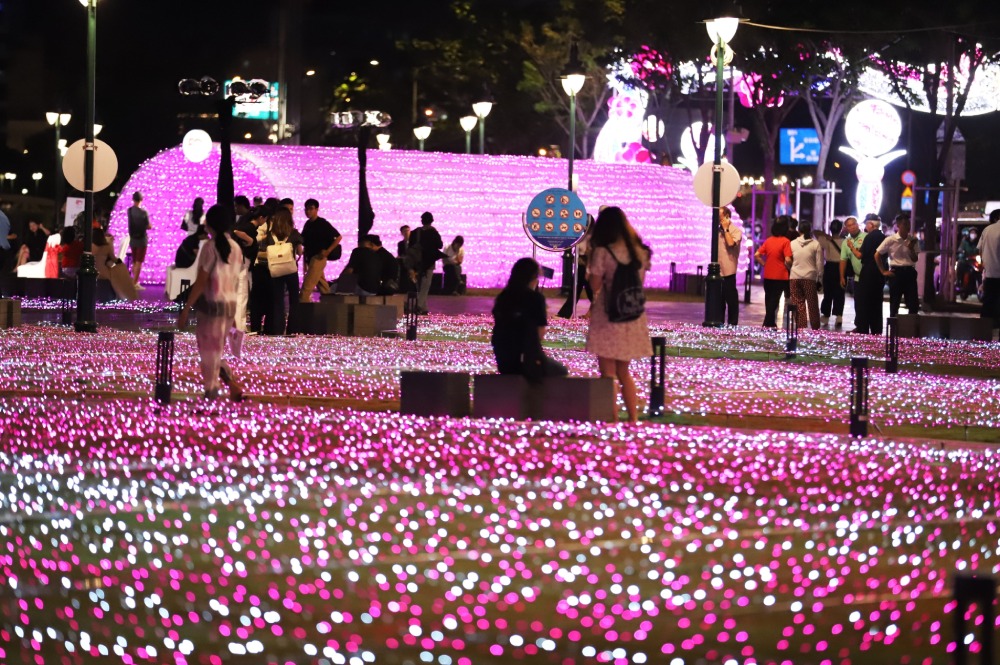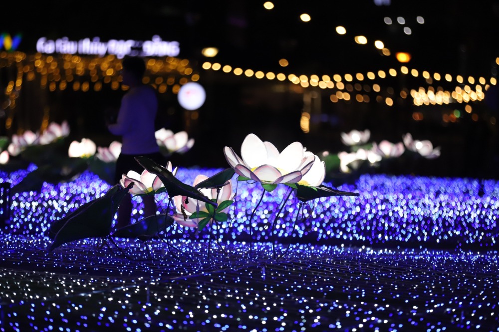 (SGTT) – Nhân dịp kỷ niệm 50 năm quan hệ ngoại giao Việt Nam – Nhật Bản, ban tổ chức đã lắp đặt 500.000 bóng đèn LED tại công viên bến Bạch Đằng (quận 1, TPHCM). Công trình này lấy cảm hứng từ “hồ sen” và “khu vườn hoa anh đào”.