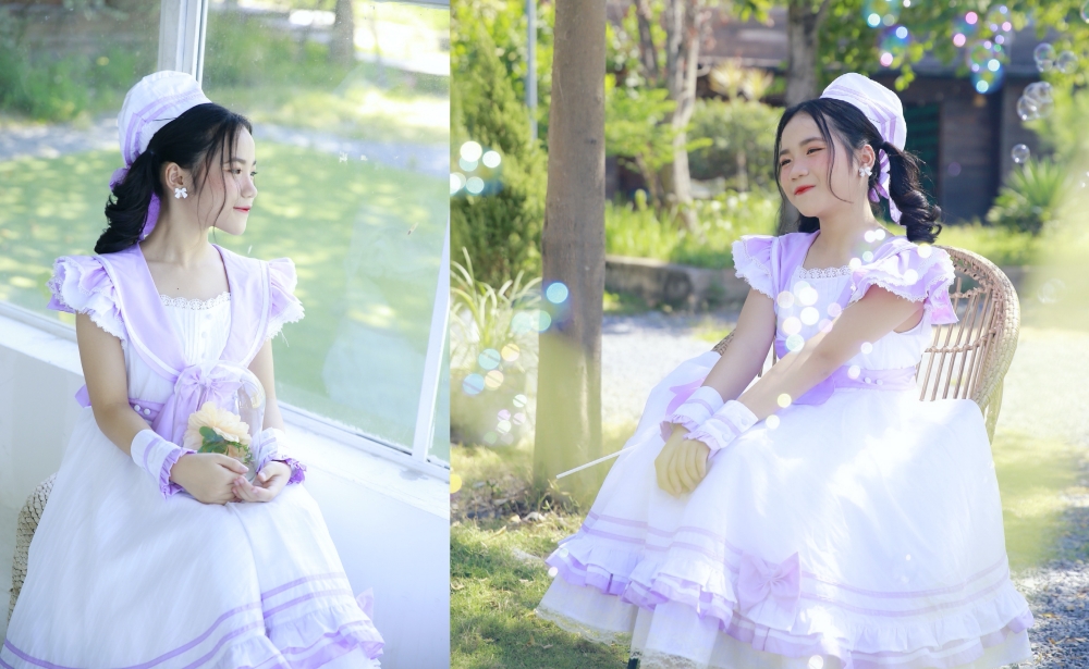 Sở hữu gương khuôn mặt Vline thanh tú, nụ cười dịu dàng, Phương Phương như một nàng thơ với chiếc váy trắng pha tím pastel trong BST Sweet Dreams của NTK Tuyết Hường.