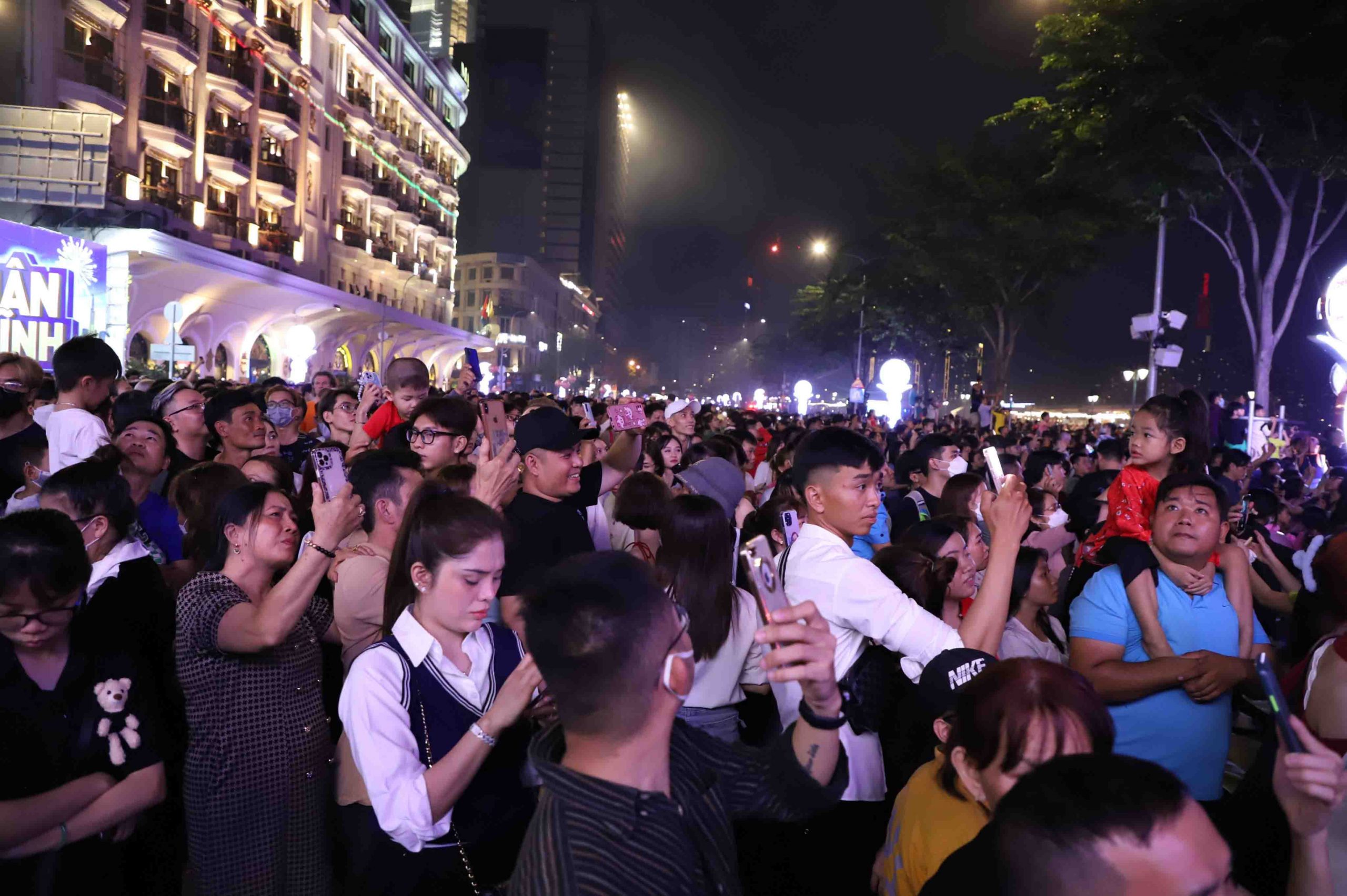 Hàng nghìn người có mặt tại khu vực trung tâm TPHCM vào thời khắc chuyển giao năm mới thưởng thức bữa tiệc pháo hoa rực rỡ và mãn nhãn. Ảnh: Lê Vũ