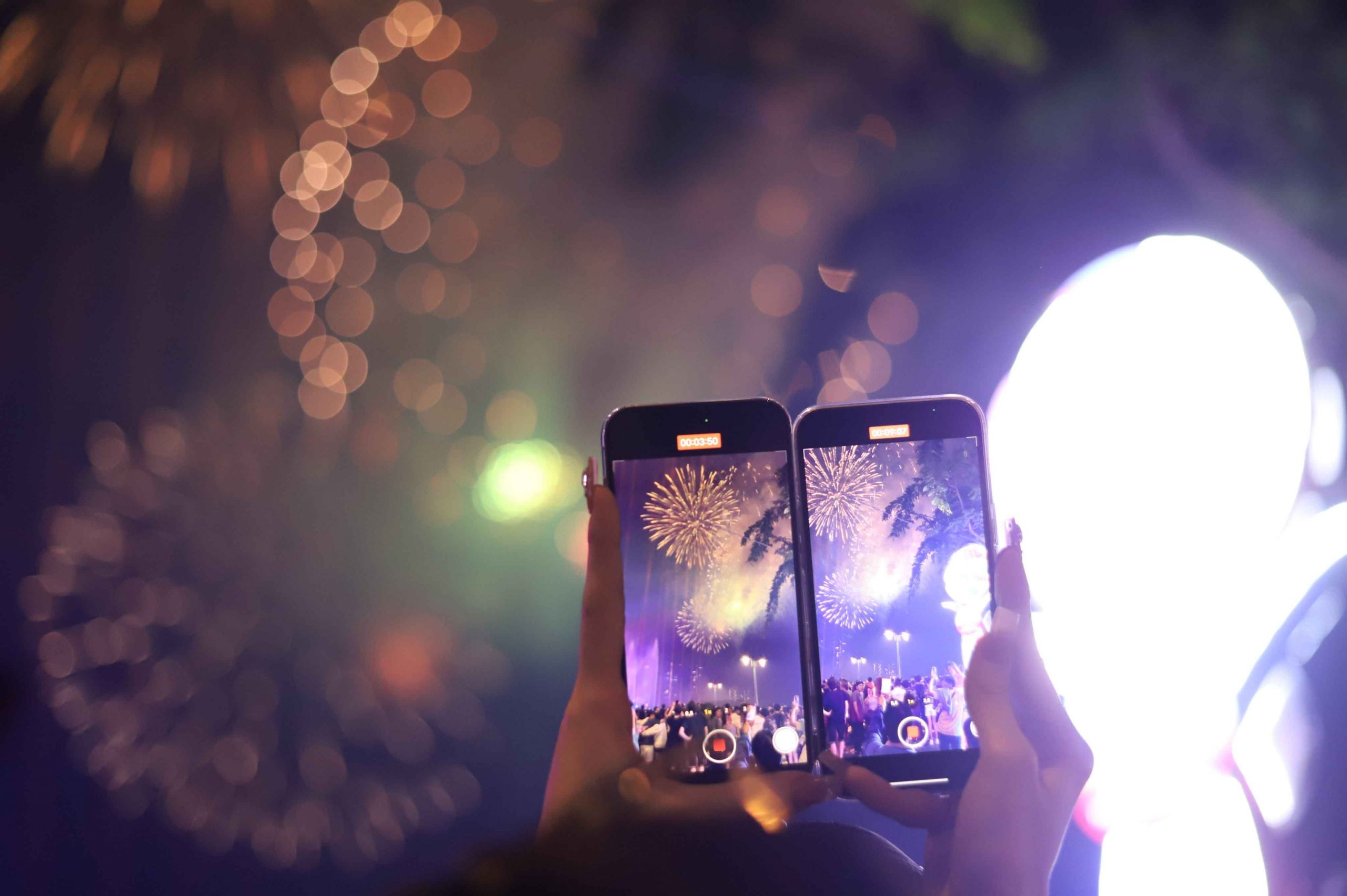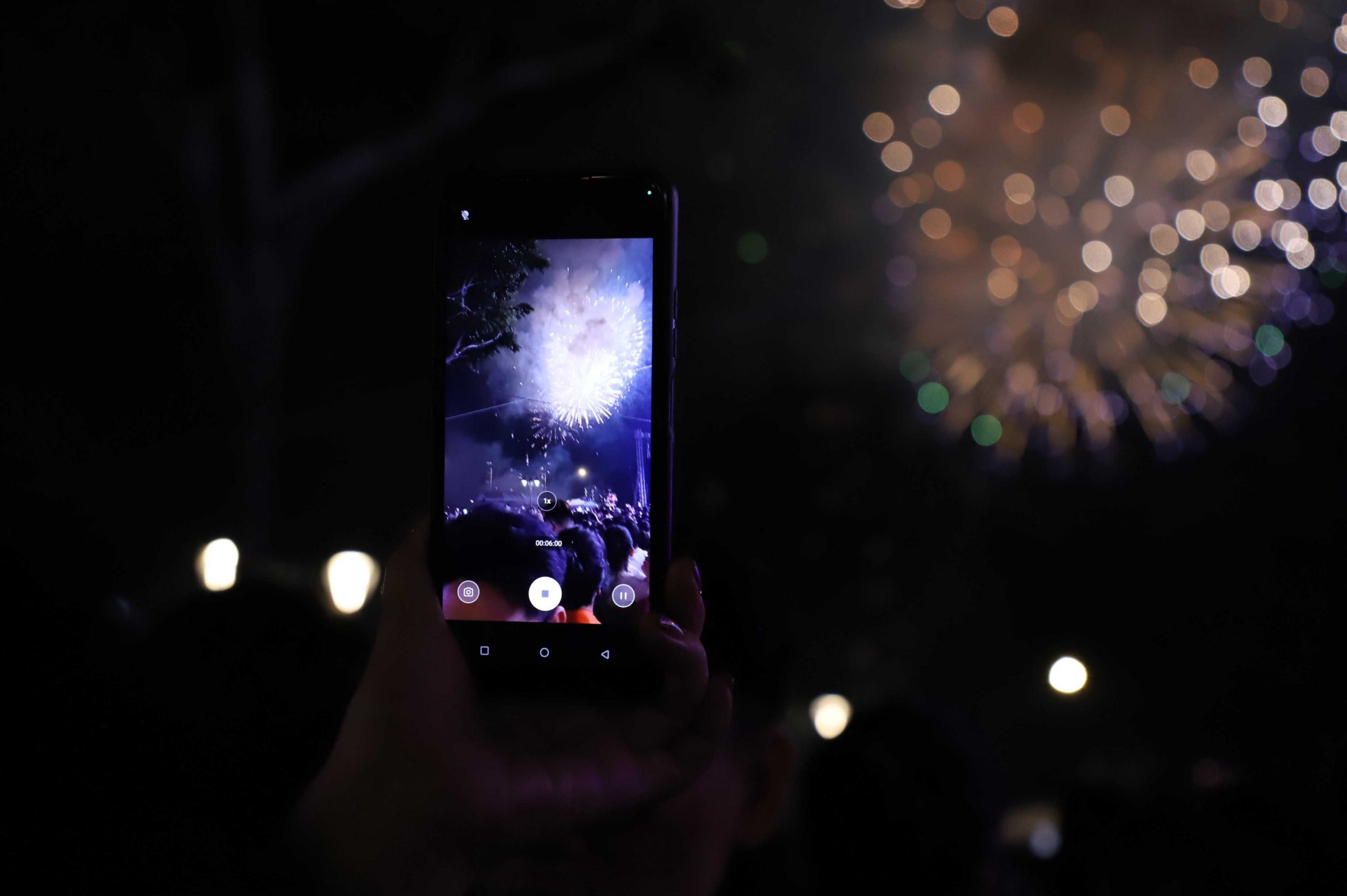 Nhiều người dân không quên ghi lại những hình ảnh pháo hoa đẹp mắt và đáng nhớ trong đêm giao thừa. Ảnh: Lê Vũ