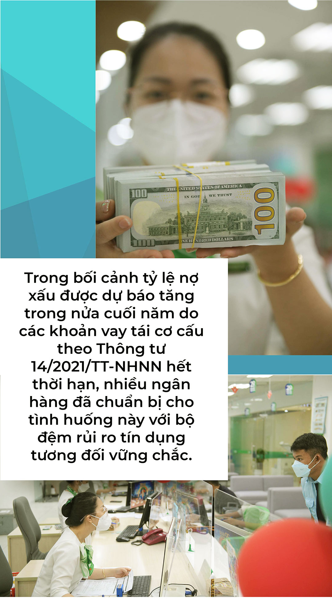 Trong bối cảnh tỷ lệ nợ xấu được dự báo tăng trong nửa cuối năm do các khoản vay tái cơ cấu theo Thông tư 14/2021/TT-NHNN hết thời hạn, nhiều ngân hàng đã chuẩn bị cho tình huống này với bộ đệm rủi ro tín dụng tương đối vững chắc.