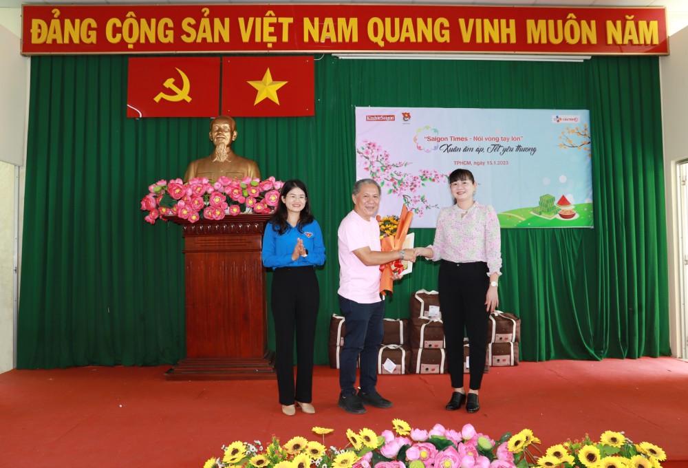 Với mong muốn chia sẻ, chăm lo cho người dân có hoàn cảnh khó khăn đón một dịp Tết Nguyên đán Quý Mão 2023 đầm ấm và sum vầy, huyện đoàn huyện Nhà Bè, TPHCM phối hợp cùng Tạp chí Kinh tế Sài Gòn tổ chức trao 100 phần quà Tết cho người dân tại xã Long Thới, huyện Nhà Bè, TPHCM.Trong thời gian qua, chuỗi chương trình “Saigon Times – Nối vòng tay lớn” đã nhận được rất nhiều hỗ trợ từ doanh nghiệp. Dịp này, phần quà Tết gồm các hiện vật có trị giá 500.000 đồng mỗi phần do công ty Cổ phần Thực phẩm CJ Cầu Tre tài trợ.Đại diện Tạp chí Kinh tế Sài Gòn, ông Trương Tấn Đức, Thư ký tòa soạn hy vọng những phần quà này sẽ phần nào động viên tinh thần cho các hộ gia đình khó khăn dịp tết đến xuân về.Về phía địa phương, bà Trần Thị Dung, huyện uỷ viên, Bí thư Đảng uỷ xã Long Thới cũng đã gửi lời cảm ơn đến Tạp chí Kinh tế Sài Gòn và nhà tài trợ Cổ phần Thực phẩm CJ Cầu Tre đã có sự quan tâm kịp thời đến người dân địa phương trong dịp Tết Nguyên đán Quý Mão 2023. Trong ảnh bà Trần Thị Dung và bà Nguyễn Thị Thanh Hằng, Bí thư Huyện Đoàn Nhà Bè (áo đoàn Thanh niên Cộng sản TPHCM) tặng hoa vả gửi thư cảm ơn cho ông Trần Minh Hùng, Tổng Biên tập Tạp chí Kinh tế Sài Gòn.