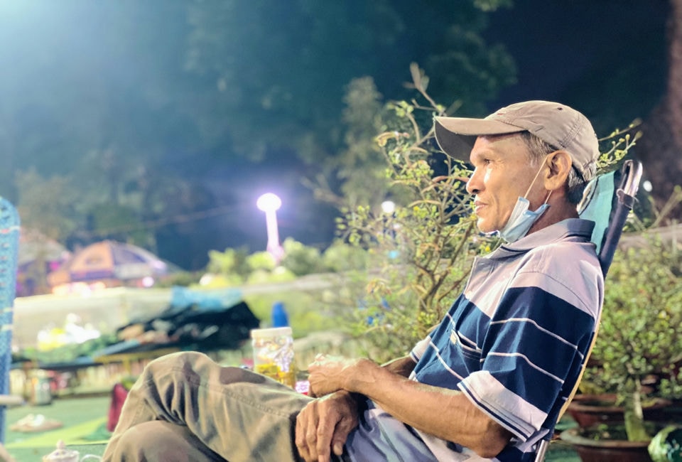 (SGTT) – Để phục vụ nhu cầu mua sắm Tết của người dân, các gian hàng cây cảnh trên khắp các con phố ở TPHCM bày bán từ sáng tới đêm muộn. Dạo quanh một vòng Công viên Gia Định ở quận Gò Vấp vào đêm khuya, không khó để bắt gặp cảnh nhiều tiểu thương căng bạt, ngủ lều để canh bán hoa Tết. Nhiều người hy vọng sớm bán hết hàng để về quê đón Tết cùng gia đình.