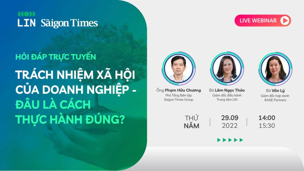 (KTSG Online) – Trong khuôn khổ hợp tác mở chuyên mục Tư vấn CSR, The Saigon Times và Trung tâm LIN sẽ tổ chức buổi hỏi đáp mang chủ đề “Trách nhiệm xã hội của doanh nghiệp – Đâu là cách thực hành đúng?” vào ngày 29-9 tới.