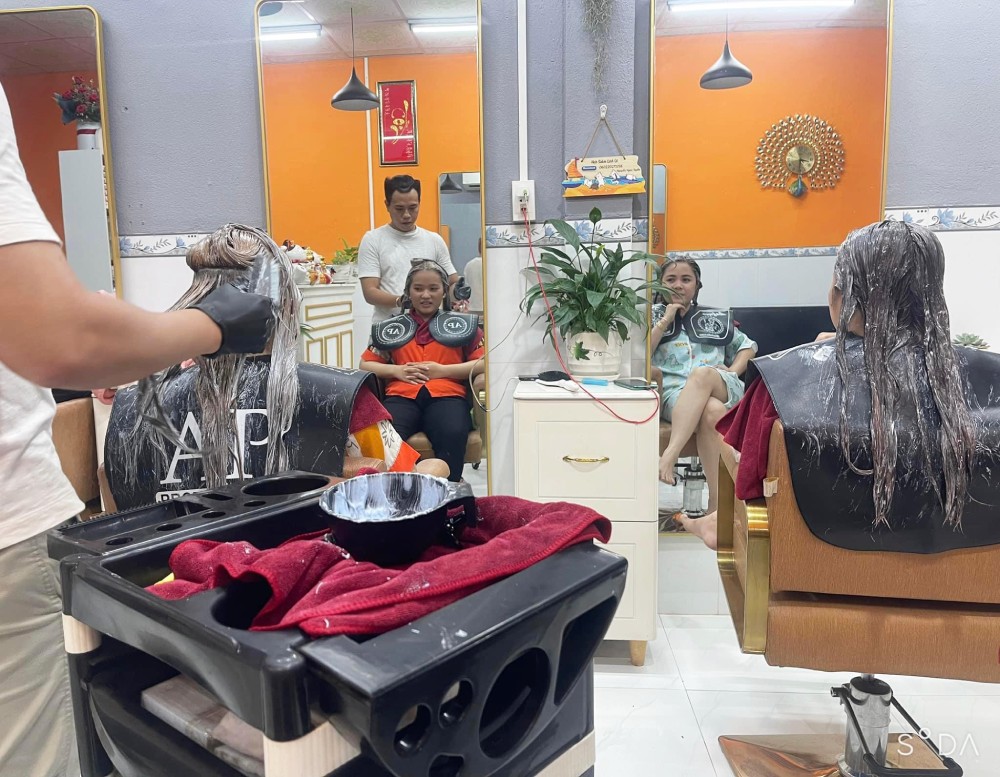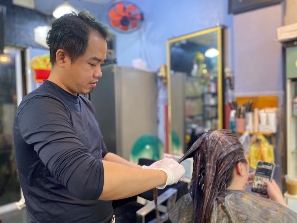 Vào dịp này, nhân viên làm tóc đều kín lịch vì nhu cầu làm đẹp tăng, cửa tiệm cũng tăng ca làm thêm giờ. Ảnh: Lê Vũ