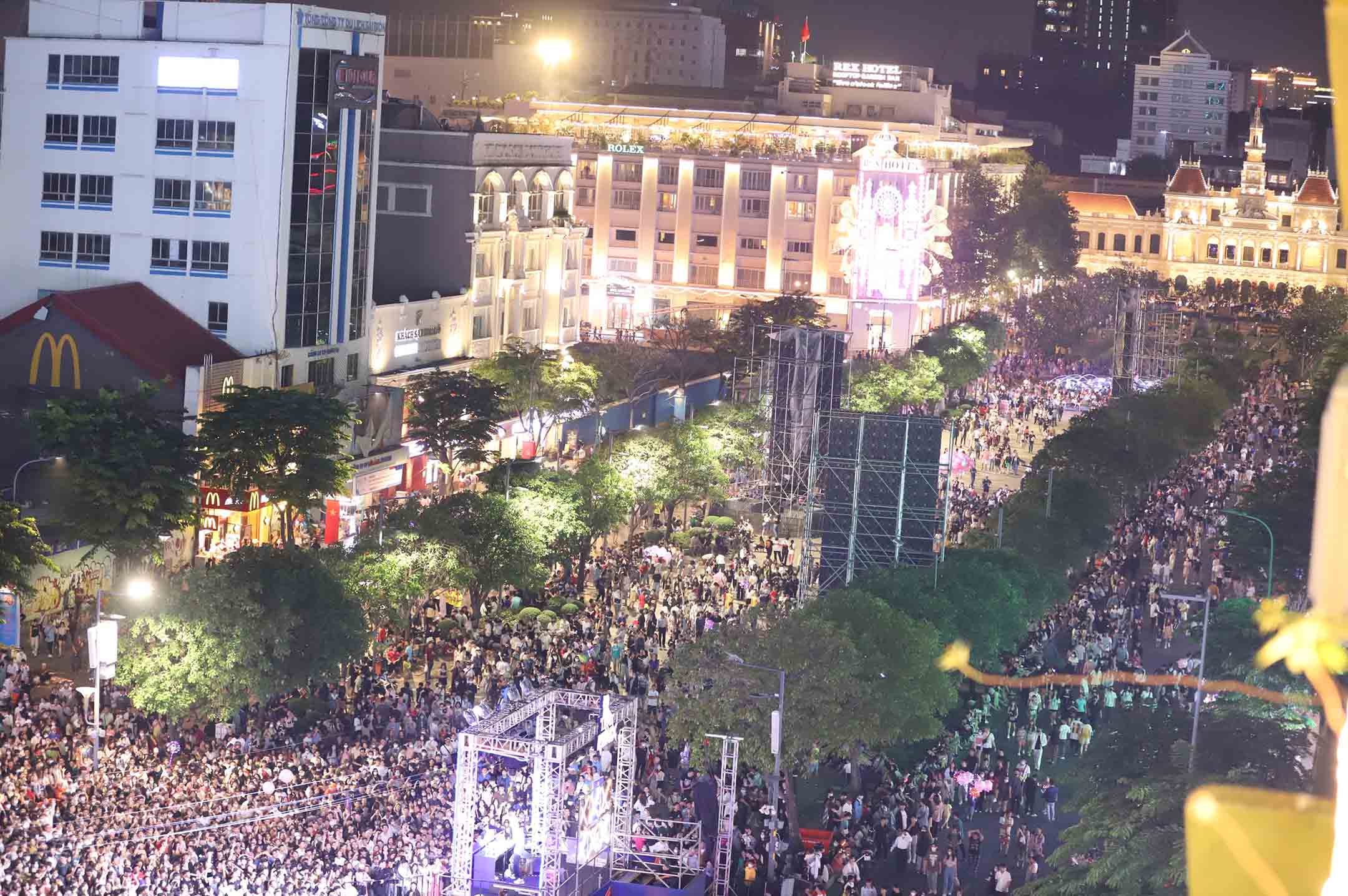 Tết Dương lịch 2023, TPHCM tổ chức bắn pháo hoa nghệ thuật tại 2 điểm tầm cao ở khu vực đường hầm Thủ Thiêm (hầm vượt sông Sài Gòn, TP Thủ Đức) cùng một điểm tầm thấp ở Công viên Đầm Sen (quận 11).Người dân cùng đồng thanh, đếm ngược từng giây tới thời khắc đầu tiên của năm mới, ghi lại những hình ảnh đẹp đêm giao thừa.Du khách nước ngoài cùng đón khoảnh khắc giao thừa và cùng xem những màn trình diễn pháo hoa.Người Sài Gòn thích thú với màn bắn pháo hoa.Du khách chào đón năm mới 2023, cầu mong một năm mới an lành, hạnh phúc.Trong tiếng pháo hoa, những câu chúc mừng năm mới được hô vang.Các bạn trẻ hào hứng, hòa mình vào sự kiện.TPHCM rực rỡ pháo hoa mừng năm mới 2023.Màn trình diễn pháo hoa đầy ấn tượng, mang lại nhiều cảm xúc cho người xem.Khi pháo hoa kết thúc, người dân tại khu vực trung tâm TPHCM sẽ tiếp tục hòa mình vào các chương trình nghệ thuật chào mừng năm mới.Trước đó, TPHCM tổ chức hai chương trình lễ hội đón năm mới tại khu vực Lê Duẩn và phố đi bộ Nguyễn Huệ (quận 1). Sức hút của không này khiến nhiều người háo hức ra đường từ chiều tối.Khu vực phố đi bộ Nguyễn Huệ nghẹt người đón năm mới.Chương trình chào mừng năm mới tại phố đi bộ Nguyễn Huệ có sự tham gia của một số nghệ sĩ quốc tế, thu hút rất nhiều bạn trẻ.Nhiều người đã có mặt từ sớm để vui chơi và tranh thủ tìm vị trí xem chương trình nghệ thuật một cách thoải mái nhất.Năm nay, TPHCM tổ chức sự kiện đếm ngược chào đón năm mới tại hai điểm Phố đi bộ Nguyễn Huệ (đoạn Ngô Đức Kế – Nguyễn Thiệp) và đường Lê Duẩn (từ đường Nam Kỳ Khởi Nghĩa đến đường Pasteur).Phố đi bộ Nguyễn Huệ đông nghẹt người, chen nhau ngồi đợi countdown 2023.Không khí sôi động tại phố đi bộ Nguyễn Huệ.Người dân ‘chen chân’ tại phố đi bộ Bùi Viện đón mừng năm mới.
