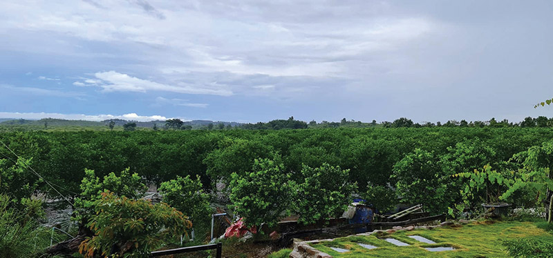 Hồi hai đứa con vẫn phải ở lại thành phố đi học thì ngày ngày hai vợ chồng Thuận đã phải leo xe bán tải “lên farm”, trần lưng đổ mồ hôi cải tạo đất, chọn giống và canh tác theo phương châm “vết dầu loang”. Sau 5 năm thì trang trại của anh đã thành hình thành dạng, rộng mênh mông, ngát xanh cam quýt.