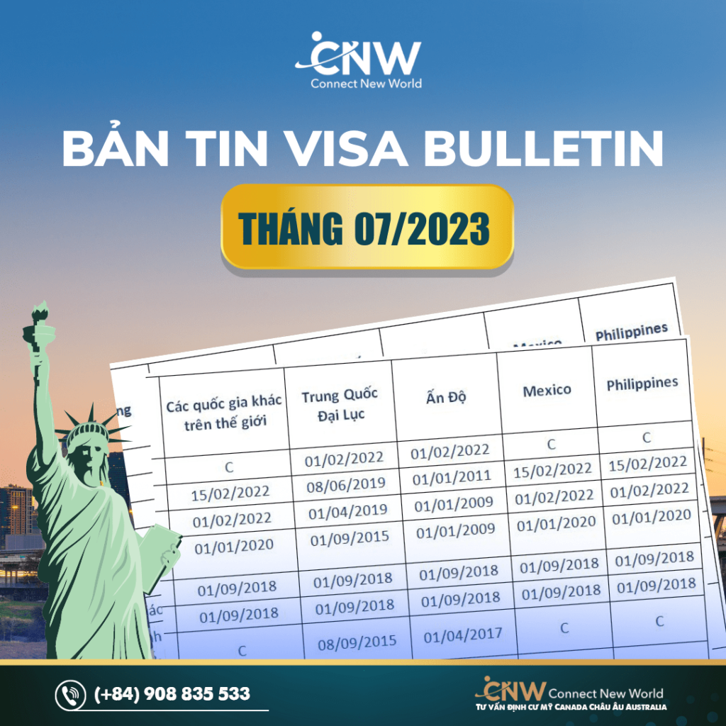 Xem bản tin Visa Bulletin tháng 7/2023 bản tiếng Anh trên website của Bộ Ngoại giao Mỹ travel.state.gov của USCIS tại đây