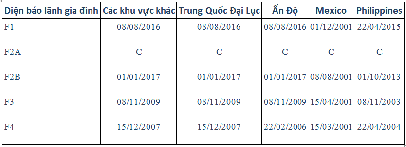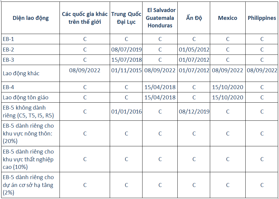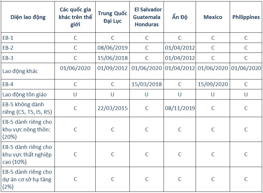 - Đối với diện lao động EB-3 và đầu tư EB-5 vẫn đang current đối với Việt Nam.