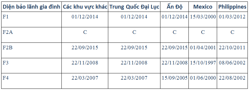 CNW xin gửi đến Quý anh/chị bản tin thị thực tháng 10. Đối với diện bảo lãnh gia đình thì Ngày hành động cuối và Ngày nộp đơn vẫn không có sự thay đổi so với tháng 9, riêng với diện lao động thì Ngày nộp đơn đăng ký và Ngày hành động cuối ở các khu vực đã có sự thay đổi:
