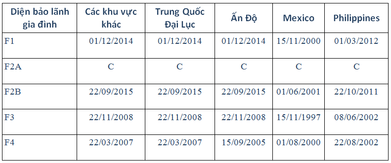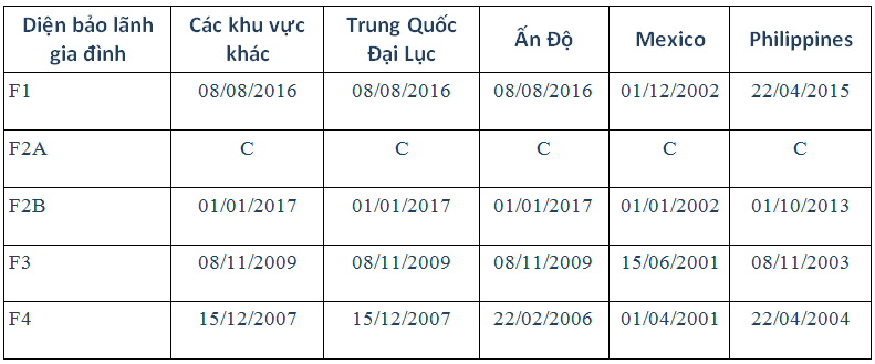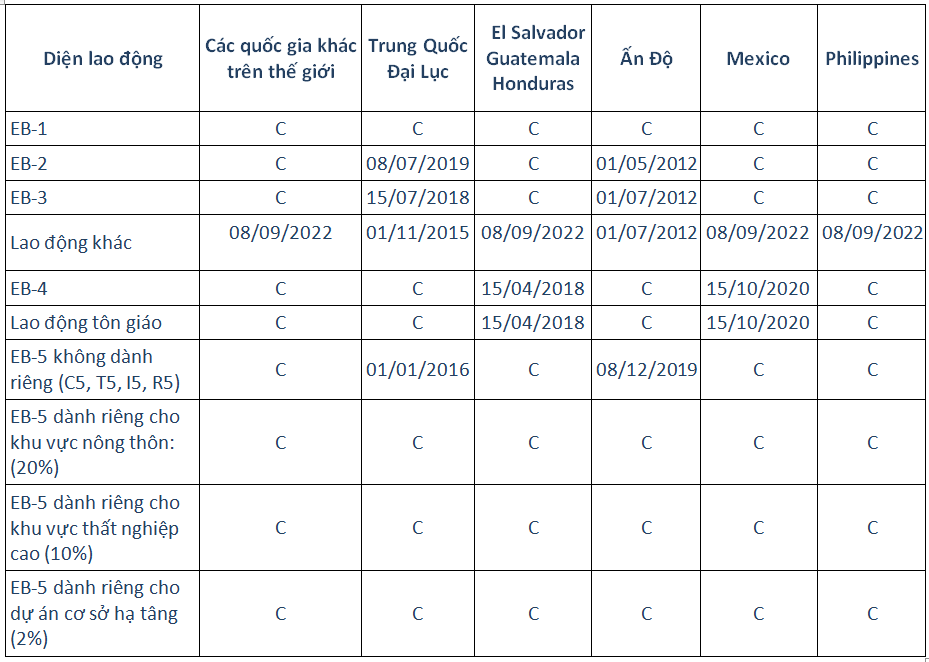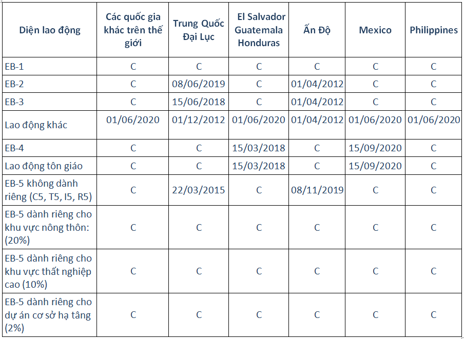 - EB-3 (diện lao động phổ thông) khu vực Trung Quốc Đại Lục đã tiến thêm được 3 tháng.