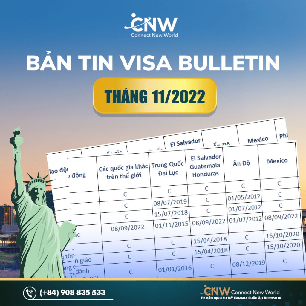 Xem bản tin Visa Bulletin tháng 11/2022 bản tiếng Anh trên website của Bộ Ngoại giao Mỹ travel.state.gov của USCIS TẠI ĐÂY.