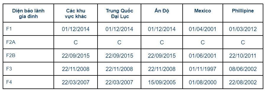 - “Ngày nộp đơn đăng ký” là thời gian cho biết bạn có thể nộp đơn đến Trung Tâm chiếu khán/thị thực quốc gia National Visa Center. Ngày ưu tiên của bạn nên trước ngày này.