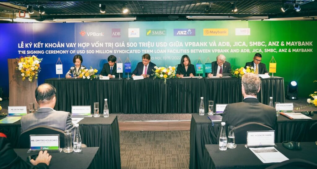Ngân hàng TMCP Việt Nam Thịnh Vượng (VPBank) hôm nay đã ký kết thành công thỏa thuận vay hợp vốn trị giá 500 triệu đô la Mỹ, tương đương gần 12,5 nghìn tỉ đồng từ năm định chế tài chính lớn bao gồm Ngân hàng Phát triển Châu Á (ADB), Tập đoàn tài chính Sumitomo Mitsui Banking Corporation (SMBC), Cơ quan Hợp tác Quốc tế Nhật Bản (JICA), Ngân hàng ANZ và Công ty Chứng khoán Maybank Securities Pte. Ltd. – thành viên của Tập đoàn Ngân hàng đầu tư Maybank.