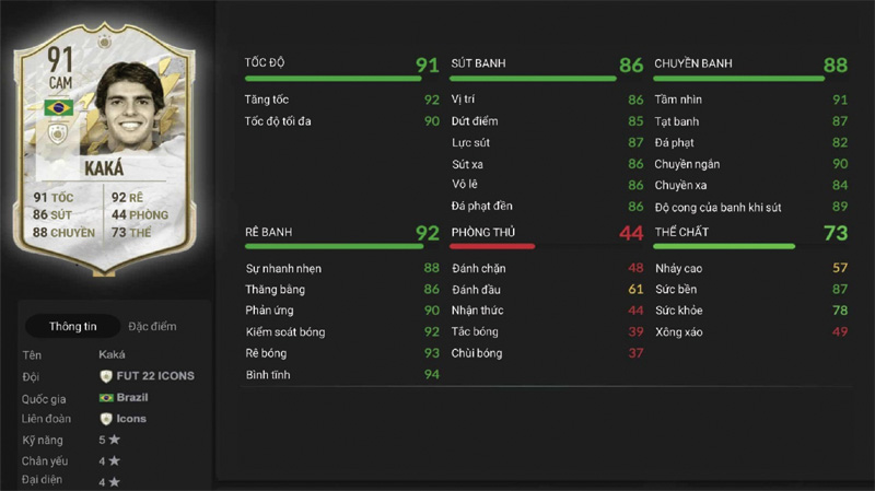 Việc thi đấu ở trên sân sẽ yêu cầu các cầu thủ sẽ phải có đầy đủ các kỹ năng nói trên. Tuy nhiên, mức độ yêu cầu của từng kỹ năng sẽ khác nhau ở theo vị trí công việc trên sân của mỗi cầu thủ. Các yếu tố cấu thành trong Bảng A có những chỉ tiêu nhỏ hơn để phản ánh các khía cạnh khác nhau của các yếu tố cấu thành. Chẳng hạn cầu thủ KAKÁ trong Hình 1 có vị trí là tiền vệ tấn công trung tâm sẽ có chỉ tiêu tấn công cao và phòng thủ thấp, nhưng vẫn được đánh giá cao vì vị trí này coi trọng yếu tố tấn công.